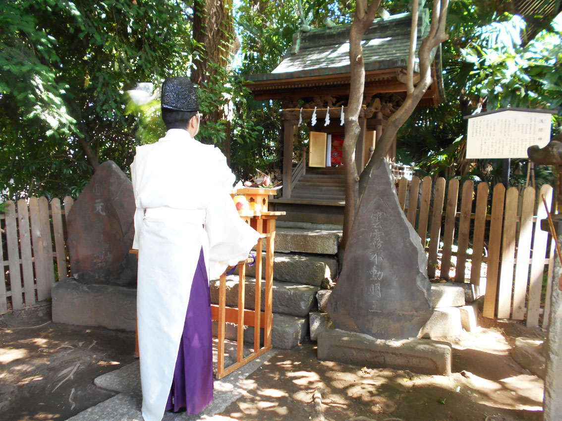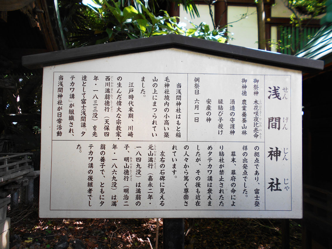 「河崎山王社」とありますが、「河崎」は「川崎」、現在の川崎稲毛神社のことです。本文には、別名「堀内山王権現宮」で書かれています。堀ノ内という村にあったからです。 絵図には、本殿以外に「いなり」や「天神」や「弁天」など、数々の境内社が描かれています。残念ながら、この中に浅間神社は見当たらないですが、川崎浅間神社のHP には「境内には小高い築山があり、浅間神社が祀られていた」とあります。富士塚があった証拠ですね。 現在、稲毛神社の西側の境内に浅間神社があり、6月1日には例祭が催されています。(旧暦の6月朔日は富士山の山開きです) ここには西川満翁徳行(西川伊右衛門)によって結成されたタテカワ講の富士講碑があり、この日、西川満翁のご子孫のご案内で例祭に参加させていただきました。 富士講碑は大変貴重で、西川満翁の33回忌の年(慶応元年)に建てられた、赤色鮮やかな碑(三本川が目立つタテカワ講の紋と満翁徳行神霊の文字が刻まれている)、同年に建てられた「雲霧不動明王」の三角碑。そして、西川満翁の50回忌に建てられた角柱のような碑がありました。 これらは、富士塚に建っていたものと考えられます。どんな姿をした富士塚だったのでしょうね。 Facebook あり〼