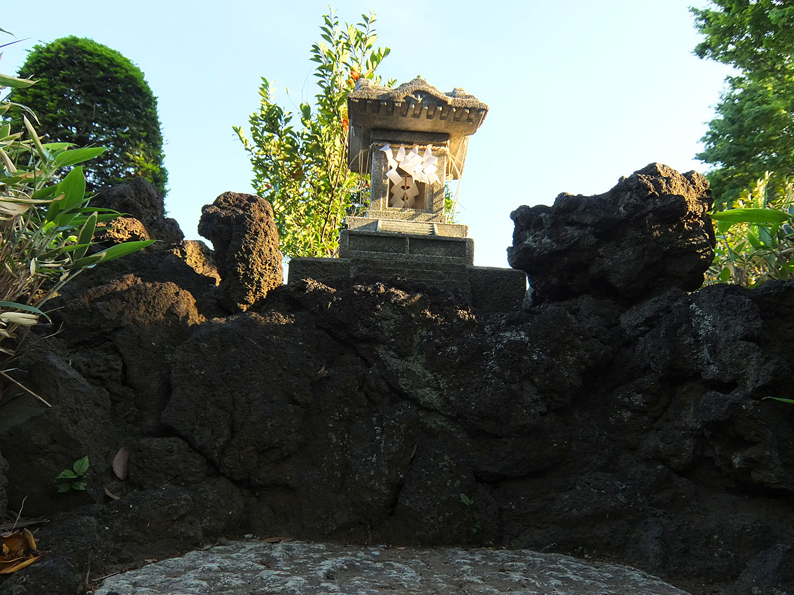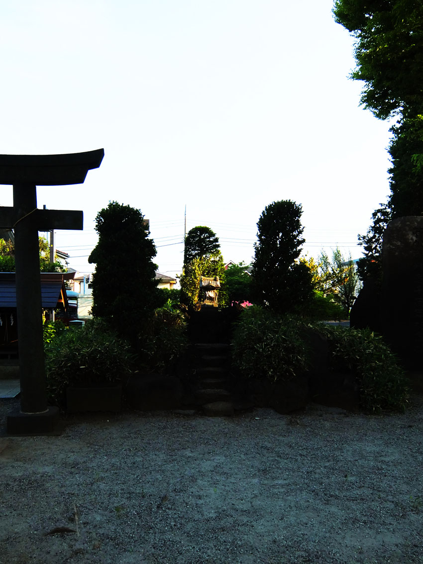 下赤塚富士のある浅間神社から、崖線に平行して、 東に向かうと、南側にも崖線が出てきます。 北側の崖線は、北にえぐれた崖ですが、 南側の崖線は、南にえぐれています。 つまり、ここだけ台地になっているわけです。 台地は、南北に幅200〜300mくらいあり、 徳丸7丁目がすっぽり入っています。 2本の崖線に挟まれ、台地の南端にあるのが北野神社です。 (3つ前の記事のカラーマップの真ん中あたり) ここに「徳丸富士」があります。 夕暮れ迫る頃、微小な塚が印象的な姿を見せてくれました。 すでに暗くなり始めた神社境内。 頂上の石祠だけ西日を受けて光っていました。 唯一の碑、小御嶽石尊大権現が立派です。 塚もかつて大きかっただったろうと推測されます。 なぜか上部断面のみに赤く塗られた形跡あり。 厚塗りのベンガラかもしれない。 ちなみに、徳丸あたりはお宝地形。 起伏ありスリバチあり、階段マニアにもたまりませ〜ん。 Facebook あり〼 |