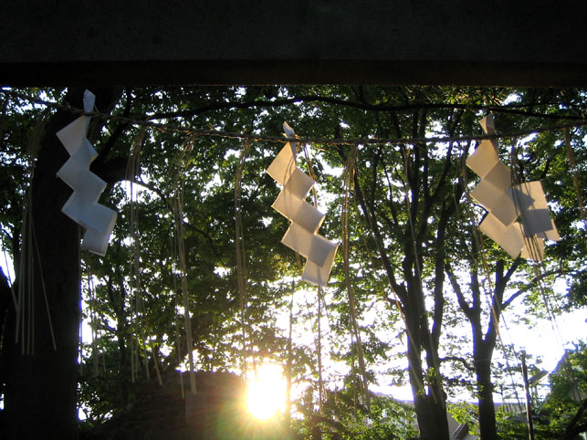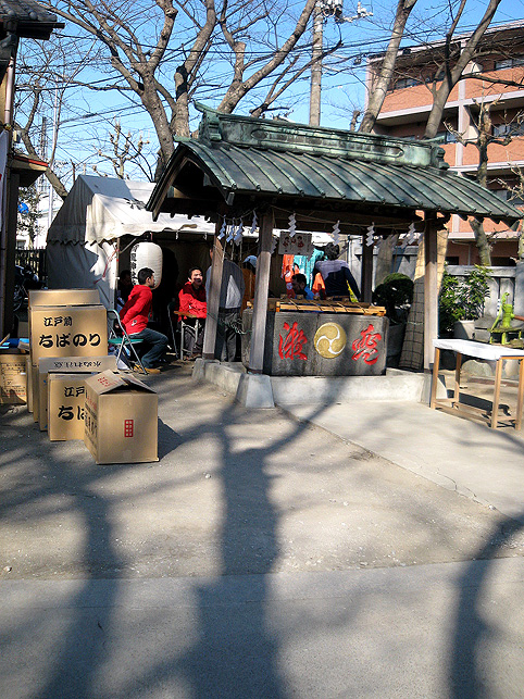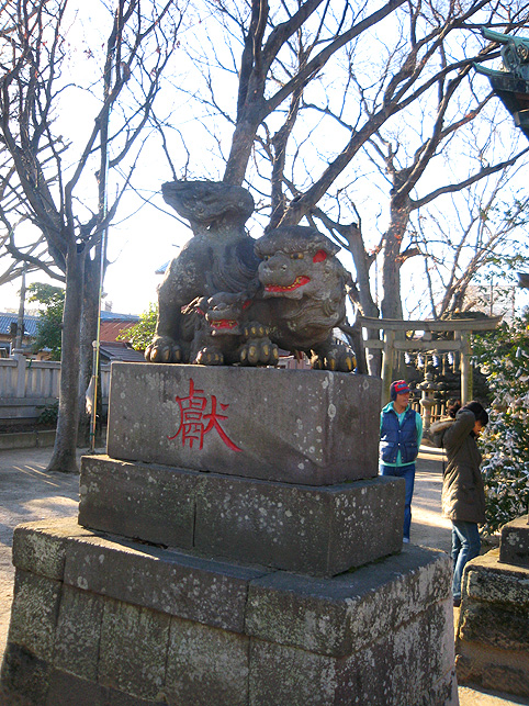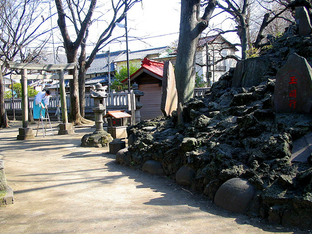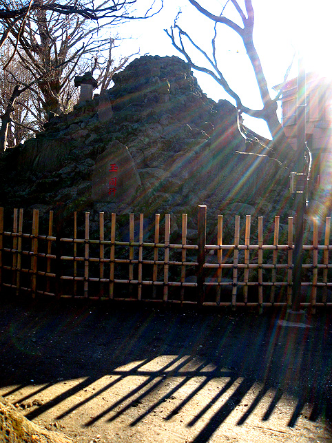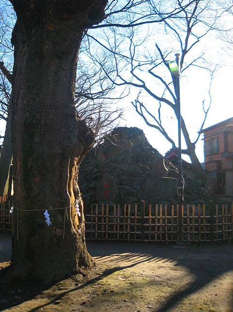竹垣もこうして見ると、悪くない。 写真を撮りながら後ずさりしていましたら、この大木のかげに若い男性が立っていて少し驚きました。彼は木の幹に手の平を当てていました。私もよくするように、木の体温を感じていたのかも。。。 富士塚に近づくと、雀が一羽、登山者の石像に話しかけていました。 日向に回ってみると、コントラストの強さから、あることに気づきました。 今までないと思っていた「お中道」が、うっすら見えてきました。わかりにくいけど、確かにうっすらと。 今年になってからこんな立札が作られました。どうしたんだろう。何だか急に富士塚を気にし始めたような、この清瀧神社。 そう言えば、ここの狛犬はちょっと変わっています。左の「うん」の傍らに子狛犬がいますが、右の「あ」にも台座のところにいます。落語家の三遊亭円丈さんの、狛犬コレクションの本をずっと前に読んだ時、この狛犬も載っていました。 柵で囲まれた富士塚と以前の富士塚の様子。先月までは柵はなかったのです。 よし、裏まで回って観察してみよう! おや、光の具合で「大澤くずれ」がとても美しい。左斜面を行く行者の石像も苔むして色鮮やかです。う〜ん。意外とこの青竹柵は違和感ないな。。。とつぶやきながら歩く。柵は塚ぎりぎりに設置されていて、この円錐の富士塚の周りをすっきり回りきれます。 登れなくなったのは残念だけど、素材や作り方をよく見ると今まで見た柵の中で一番よい。竹の質もいいし、棕櫚縄も丁寧にくくってあります。そして、正面の登山口はこのように可動式の門となっていました。最大限竹を使用する工夫も見られる。これはなかなか好感持てました。塚の掃除や神事の時だけ開かれるのなら塚の為にいいことかもしれない。そう思うのは…… 確かにここ数年、岩が塚から崩落してたからです。近所の小学生たちが登っているうちに石が落ちるのも知っています。実は私も憂慮していました。正直に言えば、いつかこうなるのは予想をしていなくもなかったです。特に「今年はどうするんだろ!」と思っていました。 というのは、今年は4年に1度の「浦安三社祭」があるからです。大勢の人が集まるその祭に合わせて、神社は何か策を講じるのだろうかと頭をよぎったこともありました。この日清瀧神社の境内では、青年会の人達が、祭のための「鯉口シャツ」のサンプルを掲げていろいろ話し合いをしていました。 (浦安元町は、西組と東組に分かれていて、それぞれ西組若衆、東組連合と名づけられた青年会があります。祭では彼らの熱い活躍が見物ですよ♪) 今日からちょうど3か月後は「浦安三社祭」の初日「宵宮=よいみや」です。真っ暗な中、100基ある神輿全てに「みたまいれ」をする厳粛な場面に立ち会えます。町にはポスターが貼られ、いろんな告知や集会も始まりました。ワクワク感やドキドキ感を肌で感じられます。 富士塚がこのように柵で囲まれたのは、保存のためだけでなく、祭の時に人々が存分祭に集中できるよう、生活との共存を大事にしてのことなのかもしれない。……と、私はそんな結論に至りました。 この町で祭は神事としてとても大切です。ちなみに「浦安」という地名は、「日本書紀」の中でイザナギノミコトが言った言葉からとったとも言われています。(イザナギは、現在の日本のことを浦安と名づけました) |