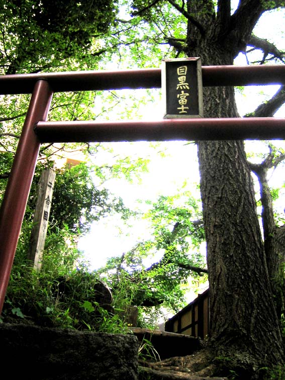 【富士塚は動く】 これは現実です。ちゃんとした富士講があっても……実によく移動する。 でも、受難に負けない民衆の強さが塚を支え続けたのですね。 ボク石(溶岩)や玉石を動かすような塚の移築と違って、この富士は、 さほど困難ではなかったはずです。元々の丘陵を利用したし、近所の 氷川神社に居を借りたというわけでして。。。 ちなみに、ここを富士山として定着させるために、斜面に登山道を つけたのは、かつての富士講講員(講は移築のころ解散)を、神社の 氏子として迎えたかった神社側の工夫だったのかもしれませんね。 まあ、厳密には富士塚と言えないです。烏帽子岩などないですからね、 浅間山と同様の扱いでしょう。でも「楽しく富士山を思う憩いの山」 ということで受け入れましょううううう。 離れてみて、こんな感じで目黒元富士を考えていていいかと思いました。 |
