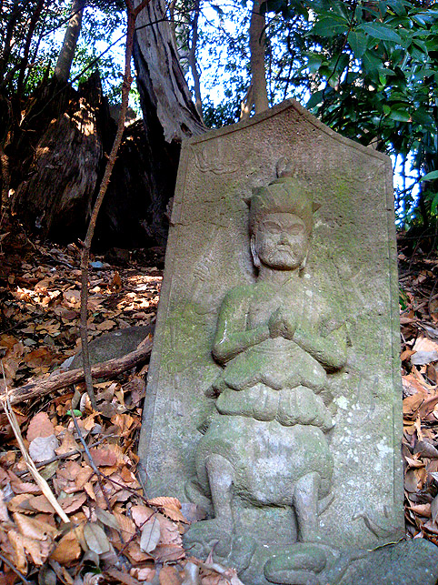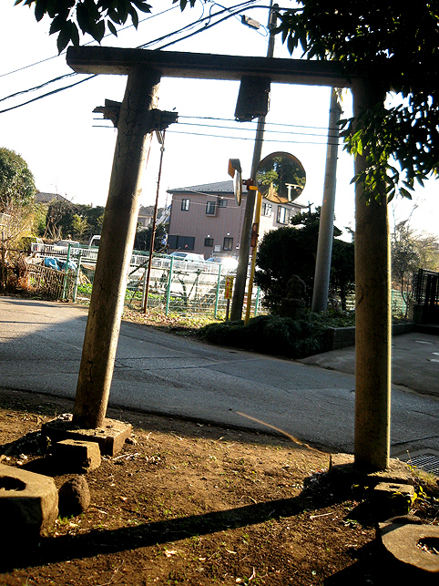 リュウテツ(流山電鉄)流山駅近くの「流山富士」から「流山街道」に戻り、北上しました。広い道をずんずん行きます。常磐自動車道をクロスし、左手に香取神社を確認しながら進むとしばらくして道が狭くなります。松戸野田線という道路に変わります。もう野田市に近いところです。Y字になる左を選んで入ったところに農業用水路があります。そのかたわらにこのジャングルがあります。 ジャングルは辻にあって、地図上で「浅間神社」と記されているポイントがこの富士塚のことでした。人家がまばらだった時代を想像していたら何だか楽しくなってきました。 こんもりした一隅は、神社の社がなくても地元の人にとっては神様のいる場所です。この木々の中に富士塚があったのです。こういう場所は、立派な神社とはまた違ったおもむきの「聖地」。とてもいとおしい気持ちになりました。 頂上にある浅間大神の石碑には明治16年と刻まれていますが、江戸時代(享和、文化)からの庚申講などの石像、石碑もここに集められていました。 石段をゆっくり登ると、いくつかの合目石があり、頂上に浅間大神のほか、「身禄霊神」の碑がありました。浅間大神と身禄霊神の間には「八合目」の石。ちょっとコンパクトすぎますか?(笑) ボク石があまり手に入らなかったのでしょう。それでも講の世話人の名前がしっかりと刻まれておりました。 ちなみに、富士塚のまわりはこんなのどかな情景が。(ばあさまと孫) |
