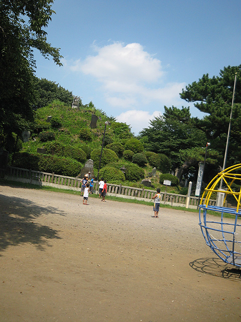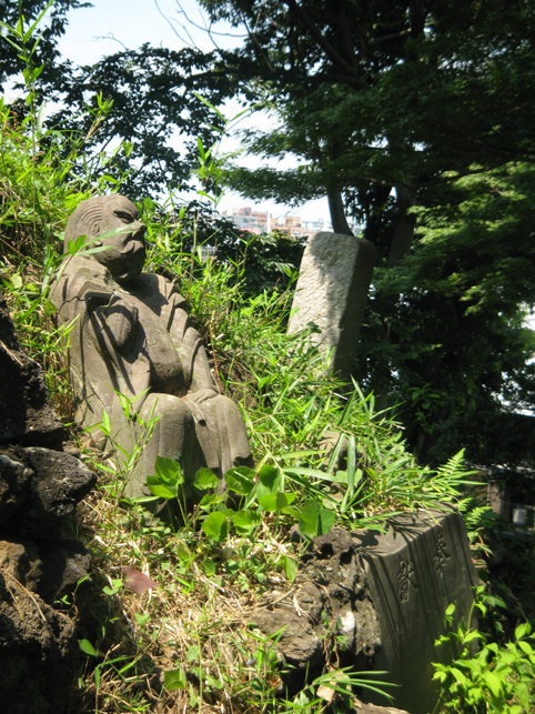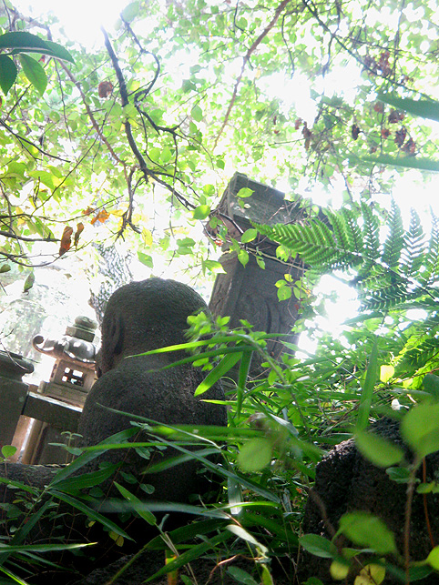 でも、保存会の会長さんに聞いてみたら登山禁止ってわけじゃないそうだ。「登れるものなら登ってごらん。壊れてっから」というニュアンス。そうと聞けば、登ってやろうと思うワケです。 とりあえず、登山口を探す前にお参りを。あ、敷島神社の本殿はとなりに立派なものが建ってますが。 浅間神社。講は丸吉講ですね。 確かに、子供向けに「登っちゃダメ」のサインはありました。子供がいるので、オトナは目の前では登れない。タイミングを見てからということにして、裏へまわります。途中、塚の左側面にあったのが、松尾神社。きっとここらからも登山道はあるのだろう。 ちょっと進むと御胎内の碑がっ。かなりデカい。 回りこんだところ。わ〜。大きな人穴だ。入れないし入る気もないが。。。あれ?何か飛び込んだ!?!?!? |