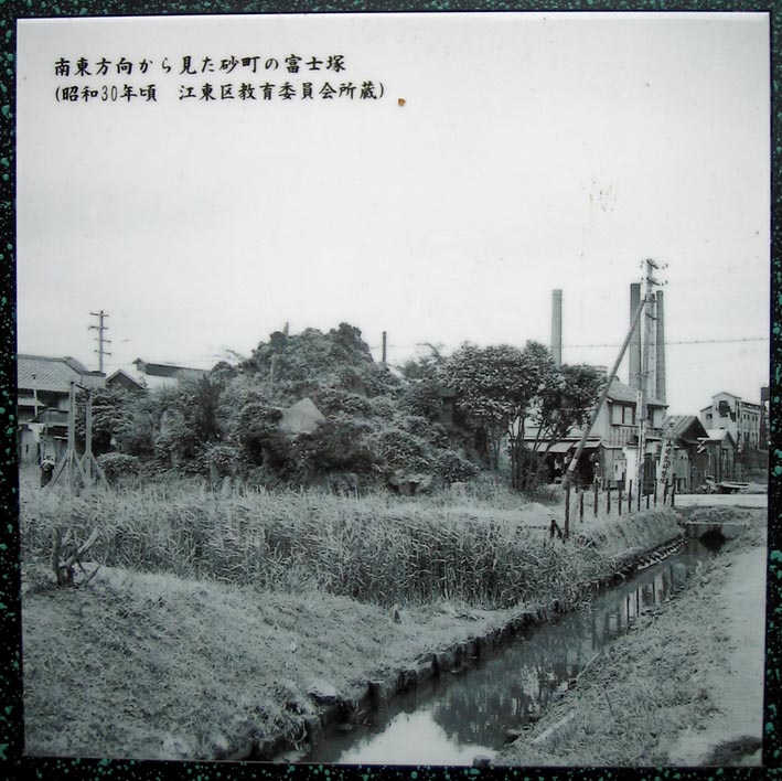 砂町富士が移築したのは昭和36年。これは教育委員会によると昭和30年頃の写真なので、引っ越し前の姿ということになります。確かに田園地帯のようです。