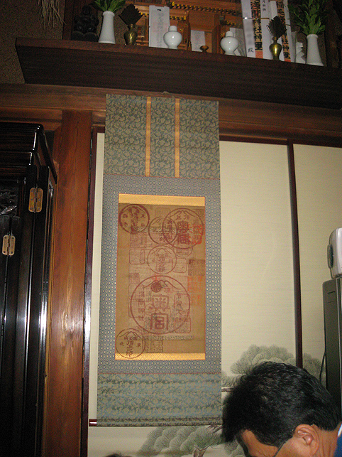 ひょえ〜! ひと月以上経ってしまいました〜。 千葉市稲毛の富士講のお焚き上げレポの書きかけでした。→コチラ では最初から。火をつける前の状態。 講員は3人。講元(左の方。中央は先達)のお宅の神棚の下、掛軸を掲げ、 拝み箪笥でのお焚き上げです。 掛軸は1枚。富士山が描かれ、角行と食行が並んでいるのが見えますが、 その上に、おびただしい数の御朱印が捺されています。 やはり、北口から登られています。それにしてもすごい朱印の迫力。 掛軸は、こんな立派な銅の筒の中に収まっていました。「新宿」は各地にありますね。現在は別の表記になっていたりします(ここでも地名には残らず)が、昔ながらの呼び名で説明されると、地域のことがわかりやすいです。これを背負って富士登山をしていたとのことでした。 「浅間神社三丁目富士講社」というのが彼らが名乗る講名で、千葉市の稲毛浅間神社の氏子さんたちです。富士講ですが、稲毛浅間の斜面で目にした山水講とはどうやら無関係のようでした。 この日は千葉の富士塚友達 Eさんからお誘いを受け、お焚き上げ見学に同席させていただきました。稲毛地区の富士講に関しては、おそらく彼が追跡調査をしていることと思います♪ つづく。。。