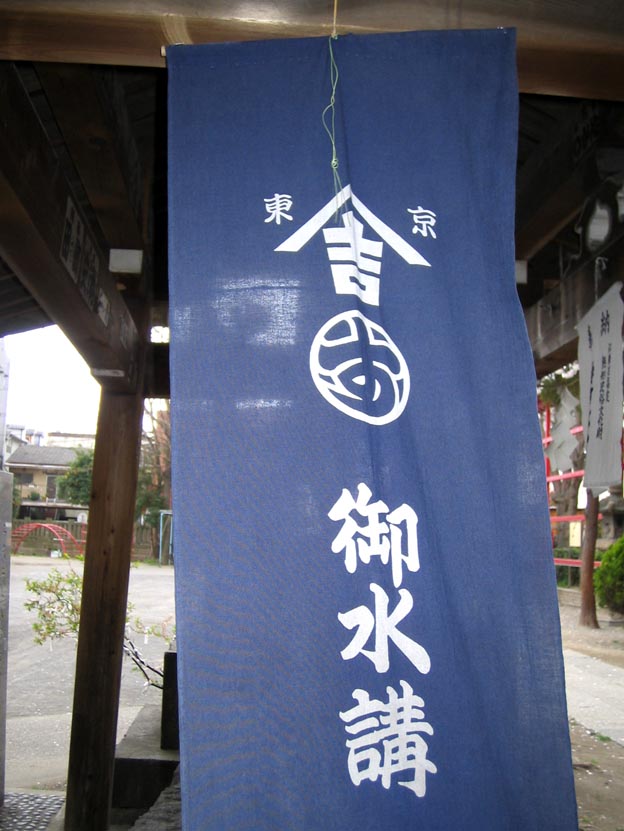 手水のところに発見したのは「マネキ」と呼ばれる講の旗。新しそう!