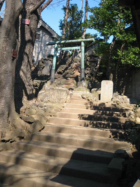 つい富士塚を擬人化してしまう私ですが、ケアされると塚は聖地のオーラを放ちます。 																															以前ここを訪れた時は、曇りの日の夕方だったせいか、暗く寂しく、荒れた感じを受けましたが、初拝みのこの日は晴天だったし、人々が集まって拝みをしたことで、富士塚のいちばん機嫌のいい日でした。いや、大げさでなく、こういう儀式の直後が一番いいのです。 さて、塚そのものを見てみます。坂は南向きですが、富士塚は南西に向いています。 富士塚の手前左側には三峰講の祠があり、その上には稲荷神社が祀られています。こう繋がっていると、富士塚はどこからを指すのか。。。 おそらく、唯一の講碑の位置くらいからでしょう。 頂上の石祠。お札がたくさん。と思ったら扉が壊れていた。 鳥居の内側から富士山の方角を向く。坂はうねりながら下へと続いています。綺麗ですね。 鳥居の足元にはとてもいい色の赤石。紙垂(しで)の影を受けて、春の光。 石段は、富士塚の横を通り、八幡神社社殿のほうに続いています。 うっかり八幡神社の写真を撮るのを忘れてしまいましたが、かつての富士塚は、社殿の北側だったとか。 講の方たちの話をつなぎ合わせると、「社殿が燃えて、富士塚を移動した」。詳細はわからないけど、とにかく富士塚は2度移築している。神社に来る前は「国鉄」の線路のほうだった。(くわしくわかったらアップしてみようっと) これは、昔の富士塚の前で撮ったという写真です。講の方たちの幼少の頃。かわいいですね〜♪ ★★★★★★★★★★★★★★★★★★★★★★★★★★★★★★★★ 【富士塚ナイト】は、3月14日ですよ♪