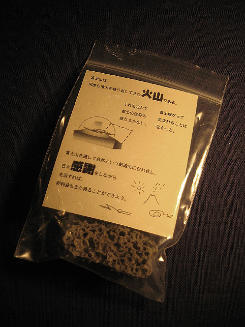 御来場くださった皆様、本当にありがとうございました♪ 心より感謝いたします。 イベント会場である、お台場 ZEPP TOKYO2階、TOKYO CULTURE CULTURE (東京カルカル)は、大観覧車のお膝元。看板にも観覧車が映り込んでいました。 こんなマイナーなテーマでもいらっしゃる方がいるのだろうか、と不安でしたが。。。 集まってくださいました。例によって、一番楽しんだのは私ですね♪ 迷走した私でしたが、大山さんの絶妙な仕切りのおかげでイベントのカタチとなり、楽しんでくださった方が多かったようです。ありがとうございました。 限られた時間のため、紹介したかったモロモロは4分の1でしたが、少しでも富士塚の魅力が伝わりましたらそれで充分です。近くに「富士塚があるかもしれない!」と思ってくださることが本望ですから。 また新しい切り口で本を出す予定ですので、今度とも富士塚をよろしくお願いいたします。 富士塚ツアーもまたやります。御参加くださいね〜。 さて、こういう場では新しい情報も飛び交います。 「○○の庭に富士塚らしきものがある!」と御提供くださったり、私が行ったことのない富士塚の詳細もたくさんいただけました。本当にありがとうございました。 リアルタイムで見たTwitterのアップも面白かった♪ 質問がつぶやかれ、画面を見てそれに答えたり、話をふくらませたりと♪ 本当にお世話になりました! ……………………………………………………………… 追記 3/17 富士塚ナイトに関する【つぶやきまとめ】です。 errieさん、ありがとう! ……………………………………………………………… そして、イベントならではのお遊びに、「富士山御神籤(相性のよい富士塚付き)」も引いていただいたり(1〜5富士で表わした吉凶?)、ジャンケン大会でプレゼントもお渡しできました。 ↓プレゼントがコレ。 「あま〜い溶岩」は、実は砂糖菓子なのです。おそらくコレをゲットされた方は、本物の溶岩だと思ってらっしゃると思います。「溶岩をコーヒーに浸すと甘い出汁が出るのか!?」と。 ごめんなさい(笑)。説明不足で。ちょっとおどかしてみたかったのです。 割るか削るかして、コーヒー/紅茶や煮物にお使いくださいね〜♪ ちなみにこの「あま〜い溶岩」は、富士山の麓の河口湖町船津で作られ、土産物として販売されております。船津と言えば、船津の胎内。(富士講による)最古の富士塚「高田富士」を築造した、高田藤四郎が発見した胎内です。 というわけで、富士塚に御縁のある土地から来たものですから、きっと富士山パワーも宿っていますよ! あ〜シャックリが止まりません。 イベント終了後のオフ会で充分飲んで来たのに、帰宅後また飲んでます。 明後日は某新聞の取材を受ける予定です。 その場所をこれから決めることにいたします。(実はこれが楽しい♪) そうそう、乃村工藝社の前身があの【浅草の人造富士山】を作っていたこと、てことは昨年のガンダムは現代の富士塚(!?)っていう大山さんの話は面白かったですね! いろいろ発見があって、いい夜でした♪