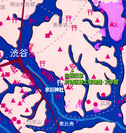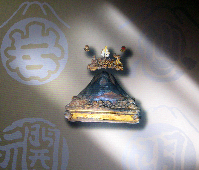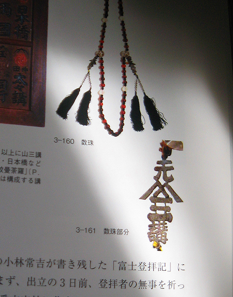 アースダイバーの付録を拝借して、位置を確認。 思ったとおり、郷土博物館のあるところは縄文の頃からの山の頂きでした。 (後で寄った氷川神社は、南西向きの坂の上でした。恵比寿までくだってみてその急な地形がよくわかりました) また、昔の地図を見るとこのあたりは渋谷村と麻布村が混在していて、渋谷村=渋谷区、麻布村=港区というくくりで考えないほうが、富士講/富士塚を知る上でヒントになることもわかりました。 さて、開催中の「渋谷の富士講」展は、展示スペースは小さいものの、大変濃い内容でした。 富士塚仲間のEさんから「身禄像はすごいですよ。思わず手を合わせてしまいました」と聞いていてましたが、私も全く同じでした。鳥肌が立ちました。 他にもいくつもの素晴らしい品がありましたが、私が最も心惹かれたのは、 図録の裏表紙にも出ているこの御神体です。富士山のふくよかなボリューム、退色しているけどかつては鮮やかな色をしていただろう朱と黒と白のコントラスト。そして、富士山の上部にある雲の上の仏、御幣、左右の日輪月輪が珍しい。 富士山型の御神体は、 品川区のや、 足立区西新井のや、 栃木県足利市の富士山が記憶にありますが、 講のお宅や神社にはこのような素晴らしい富士山が、た〜くさん眠っていると思うとわくわくいたします。 金箔をあしらった雲のつくりは、学芸員のMさんもおっしゃってましたが、富士吉田歴史博物館のコノハナが乗ってらっしゃる雲を彷佛とさせますね。私も、何か関連があるかも?と思いましたが、こちらは丸不二高瀬講社という千葉県市川市の行徳あたりの講ですから、繋がりはないでしょう。 ということは、「形式美」として定着した雲の3D表現。キント雲の渦の形は、神社などでもお馴染みですよね。 でも、富士山の上空にある雲に乗った仏は、「富士山牛玉(ごおう)を『具現化』したものと考えられる」という解説があり、その点に私はぐっときました♪ 平面を立体に表現したわけですからね♪ 富士山牛玉(ごおう)の上部はこんなふうに仏がいらっしゃる。 さて、この展覧会には渋谷区にあった富士講のさまざまな活動が紹介されました。一番よく知られているのは、道玄坂を拠点にして隆盛をきわめた山吉(ヤマキチ)講ですが、 山吉講から分かれた山三講の様子もたっぷりありました。 白髭の先達の、お焚き上げをしている姿や、中道杖を手にしている富士山での勇姿がインパクトありましたね。その先達のことをよく覚えてらっしゃるお嬢様が、会場でとても華やかなオーラを放っていた錦子さまです♪ 御高齢とは思えない若々しさ、頭の回転の早さとユーモア、少女のような純粋さも持ち合わせている方で、目がキラキラしていました。とにかくお話が楽しくて、お茶を御一緒しながら私はずっと笑いっぱなし♪ 「こんな歳のとりかたをしたい」と思わせる素敵な方でした。 そんなわけで、先達や講のお話を聞くのをすっかり忘れてしまいました(笑)が、山三講にも富士塚があったことを付け加えておきます。塚のあった場所は現在の港区になりますが、先に書いたように、このあたりは土地の境界が時代によって曖昧なこと、また先達が渋谷区にも住まわれていたので、充分渋谷つながりでした。 山三講の富士塚についてはまた後で。。。 とにかくいい展示でした。 本当に御苦労があったと思いますが、図録も素晴らしい! 展示に間に合わなかった方も、ぜひ一冊お求めになることをおすすめします。 Mさま、お話をたくさんありがとうございました。お世話になりました♪