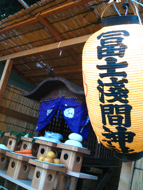なごり惜しかったのですが、「火の花祭り」の始まる前に中里を後にしました。 9月1日は、知っているだけでも4か所の富士塚で火祭りがあるのです。 残り3つのうち、今回向かったのは川越の雀ノ森氷川神社。 手についた土を、舐めようとした子供に注意したらこの表情。思わず吹きました♪ 傍にはお焚き上げの松明があります。 木片を積み上げた松明の上には、着火用の杉の葉と細木の束。それに御幣。 広瀬富士のお焚き上げのように、松明を中心に神域が作られていました。 境内の東北に位置する富士塚の頂上から見たところです。 富士塚はとてもシンプル。登るというより、儀式のための構造のよう。 とはいえ、斜面には古い石碑の数々。 松明の近くに浅間神社の仮宮も設えて。 お囃子も盛り上がってまいりました。新宿と書いて「あらじゅく」と読みます。 富士塚のある地域には、お山開きといい火祭り(お山仕舞い)といい、お囃子連が活躍します。それは、単なる町内の祭りでないことのあかし。お囃子は、神様に奉納する意味があるからです。 さて、夜の帳がおりました。 盆踊りも始まりましたね。 氷川神社も浅間神社仮宮も、闇の中で映える時刻。 冨士浅間神社の文字の裏側は、「御水講」。 渋谷の山吉(ヤマキチ)講の枝講で、砂町のオミズコウともファミリーですね。 でもここでは「おんみずこう」と呼ばれます。 お焚き上げの始まる8時にはまだちょっと時間がある。もう一度、富士塚に登ってみよう。 目の前を、数人の子供達が駆け登って行きました。 「写真、撮って。撮って〜!」 彼らは、慣れたように奥宮によじ登り、はしゃいでいました。 しょうがないなぁ。 「ここには富士山の神様がいるんでしょ?」 「うん!」 「普段は乗っていないよね?」 「うん!」 「じゃ、いっか。今日はお祭りだからね〜」 考えてみたら、彼らはこの地で「安産祈願」をもって生まれ、「初山参り」で祝福された子供たちなのです。富士山の御加護をいただいている彼らは、こうして富士山と戯れて育つのでしょう。 いい子たちでした。 別れ際、 「ありがとうございました。盛り上がりました!」 なんて、お礼を言われた時には笑ってしまいました〜♪ あ、気づくともう8時。 行者たちは出番待ちです。 つづく。。。 ![]() ![]() |