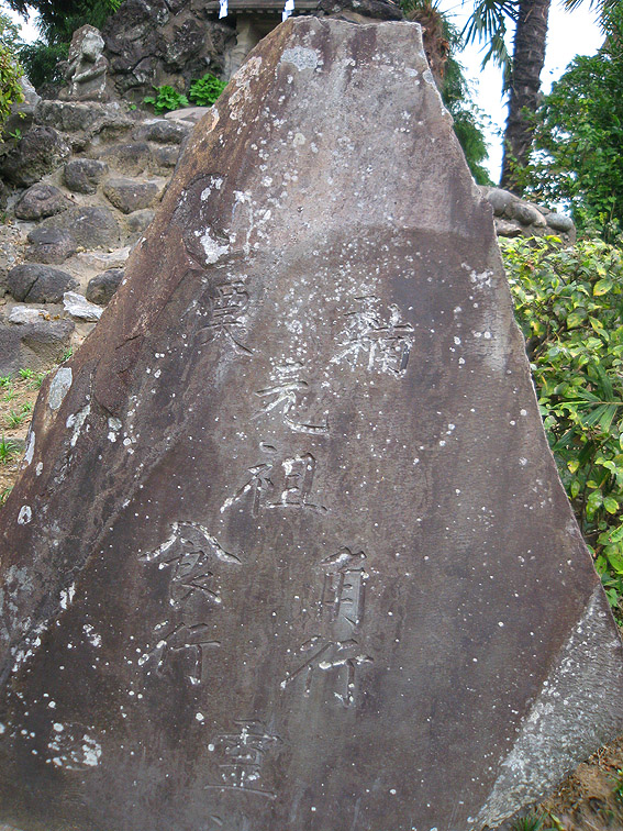 さて、この豊田本富士。 猿のいる頂上が特徴的ですが、斜面はいくつかナゾのまま。 奥宮と赤い鳥居は、富士山の方角を向いて一致していますが、 直線の石段(登山道)は右側にあり、真南を向いています。 登りきると金比羅神社の社。 奥宮に行くには、そこをすり抜けて左奥に進みます。 石段の右斜面には、磐長姫神社。 コミタケの代わりと言っていいでしょうか。祭神は同じコノハナの姉だから。 一方、左側には、 角行&食行の石碑。 そして、その下方にあるのは、 鹿島大神。と手前に合目石。 とろけたみたいだけど、七合目でしょうか。 時計回りに少し歩くと、 阿夫利神社つまり大山の神様。手前には、 数字がわからないけど、合という字があるから合目石。 何となく、土のかぶせ方が新しい気がします。 最後に、 位置的にこれもナゾな浅間大神。ヤマキチ講の紋もリッパです。 ちなみに、石碑のレイアウトは下のとおり。 浅間大神碑(先端が白い三角碑)の裏にも細い道がありました。 しかしこの塚の土は崩れやすい。きっと何度も造り直しているでしょう。 その度に何かが埋まったり、逆に出土したり。。。残りの合目石も絶対土の中だ! 頭上がうるさいと思ったら、 ヘリでした。羽根が止まったように撮れたせいで、なんか虫っぽいな〜。 白髭神社をあとにすることにしました。 北に行くと、もうひとつ富士塚があるはずので。。。 Facebook あり〼