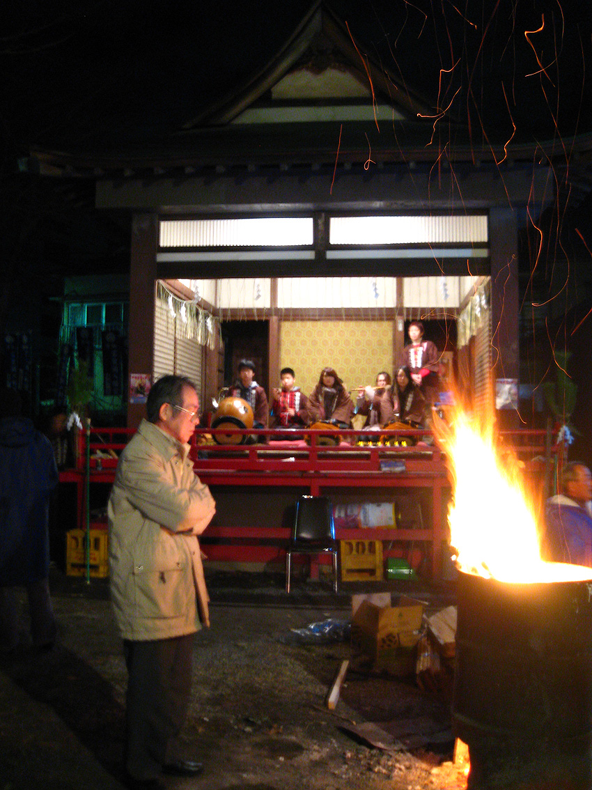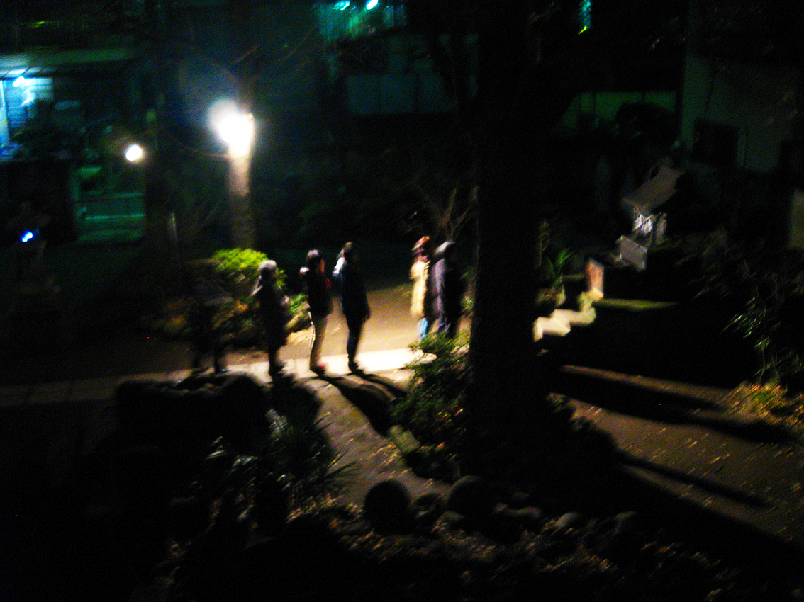 年が明ける少し前に、南砂の元八幡に滑り込みました。 「山吉丸す御水講」の提灯も煌々としています。 知った顔を探しているうちに、あっと言う間に氏子の方達が 本殿に集まりました。 宮司によるお祓いが始まりました。私も一緒になって頭を下げます。 雲間から出てきた月が気になったので、抜け出して横から撮ってみた。 右上、泳ぐように写り込んだ2012年最後の月光。 立派な神輿も一般公開。デカイです。 すでに氏子さんたちの気合いが込められている! なぜなら今年は大祭(本祭)があるそうな。 区長も駆けつけ、檄を飛ばしていました。 火の粉にフォーカスしてしまったけど、いい光景です。冬の。 撥が早くて写らない。 友人も駆けつけ、富士講の方たちと飲んだのは、日本酒とコレ。 「富士山五合目奥庭みやげ『富士のこけもも』」のお酒です。 不老長寿ですって? 嬉しい!(やっぱり長生きしたいもの) 美味しかったです。ありがとうございました。 ちなみに私は「コケモモ」という名の響きが好き。 子供の時、ムーミンの本を読んで憧れたもんです(笑)。 奥の浅間神社も見に行きました。 夏みかん(?)がたわわに光っていて驚きました。 この光と影。色彩と闇。次元の階層。非日常な。。。 子供が立ちつくす。誰かを待っている。 去年(数分前)の自分の後ろ姿?いや、先を行く自分か。 灯籠にも明かりがついて、お宮が照らされています。 まっさらな紙垂が眩しい。 「富士塚もライトアップしたらー?」なんて言いながら、 イチョウの落ち葉を踏みしめて登拝しました。 (よい子はマネしないようにね) 参拝者はどんどん来ています。列もできました。 暖かい年明けでした。 Facebook あり〼 ![]() ![]() |