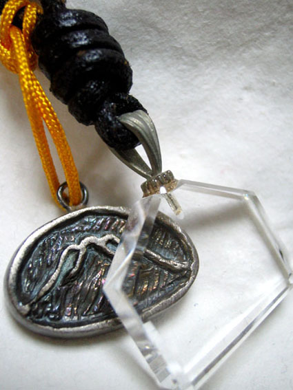 神の島で買った絵馬型の水晶と組み合わせて使っています。