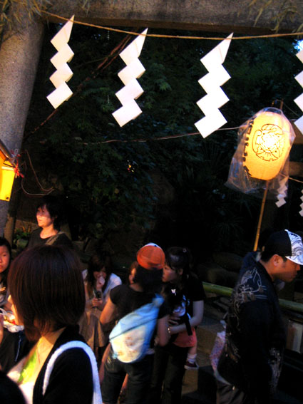 よけ境内をうろつけば、縁日の眩しい電球の背後に