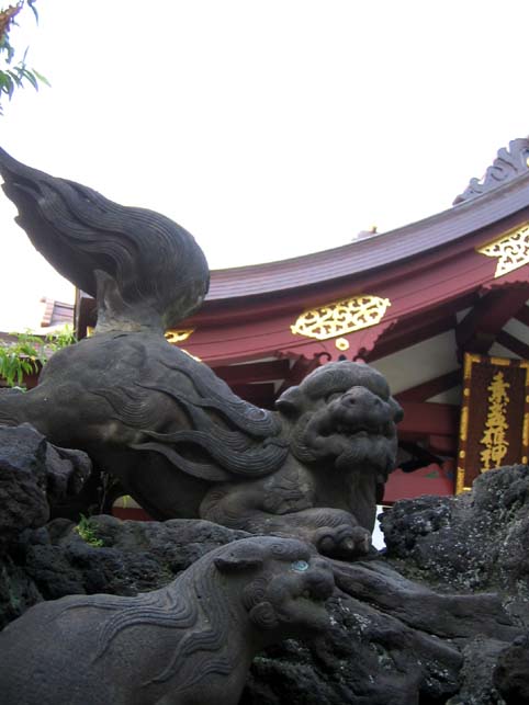 神社だというのに、何か俗っぽい匂いがするのは、祭りの余韻が残っているからでしょうか。いーえ、それだけではないです。いろんな事情でここは神様と文化と死と信仰が混在の異界です。でも狛犬の存在感だけは、こちら側に近いようでして。。。妙にホッとしたりしてね。