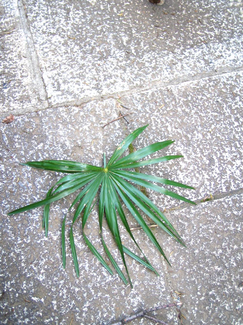 頂上の社殿の前でぽとっと落ちてた。「ぎょ。天狗のうちわか!」
