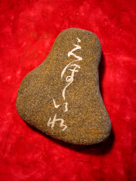 「金明水」とか「烏帽子岩」とか出てきましたが、これらは実際富士山にありまして、登山すると見ることができます。「金明水」は富士講とは関係ないですが、「烏帽子岩」が大事なんです。 「烏帽子岩」と言うと、つい湘南沖のあれを思いうかべますが、富士山の「烏帽子岩」ももちろん烏帽子のカタチをしています。富士講にかかせないこの岩について書いてみます。 江戸時代、何代目かの講祖に、食行身禄(じきぎょうみろく)という人がいました。 身禄は、富士山の七合目五勺にある烏帽子岩のところで修行し、入定(にゅうじょう)しました。命をかけて修行したわけですから当時は大センセーションでした。富士講がその直後に爆発的に流行したのはこれがきっかけですね。 で、江戸では身禄の直弟子だった造園師の藤四郎が、身禄の追悼のために富士塚を築造したわけです。きっかけは身禄の手紙の中の「ふじの御山のうつしを……」というくだりに着目したのですがね。今の早稲田大学の構内に初めての富士塚が出来ました。 ただ土を盛って富士山とするのは意味がない。身禄の講祖としてのあかしと山の神格化をはかるため、「富士山の烏帽子岩=食行身禄を祀る霊場」というシンボルがのちの富士塚作りの基礎となったようです。 私のつくるオブジェにも、最初の頃は、せっせと三角の石とくっつけておりました。 採取するところは、内房のビーチ。いいカタチがたくさんあるのです♪