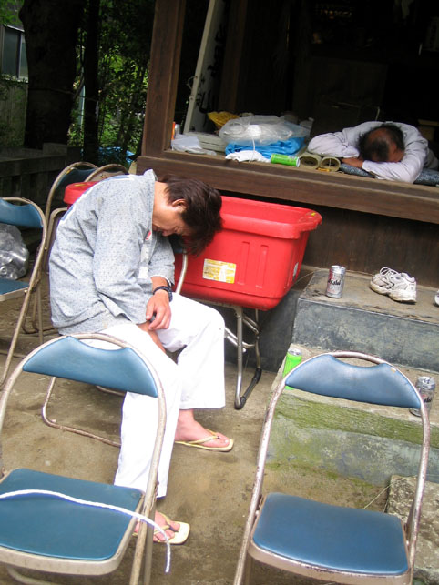 朝4時から始まったお祭りです。私だって、普段は就寝するような5時過ぎに起床しました!がむばりましたよ。まあ、到着したのは7時過ぎでしたけど。この人たちの疲労はハンパでないでしょうね。喧騒の中でもビクともしませんでした。