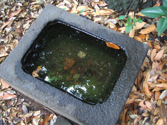 船堀村のこの一帯、昔は豊かな田園風景が広がっていたそうです。船橋市で見たいくつかの富士塚のように、広く平坦な土地にこんもり繁った森はまるでオアシス、癒される一角だったと思われます。生きものを風から守り日陰を与え、水を循環させる生きた聖地。。。森の中に人々が塚を築いて神を呼び、祈りを捧げた。やがて講はなくなり塚だけが残った。でも、もとからあった土地の自然神が「人の想いを受け継いだ」。宗教に関係なく。祈りは自然に還っていった。。。久しぶりに沖縄の御嶽(うたき)に似た空気を感じたのは、その同質なスピリチュアリティによるものだと思います。 この水盤の水が意外なほど透明で柔らかそうだったのが、とても印象的でした。それにしてもさっきから、何かに見つめられているような気がしてなりません。。。