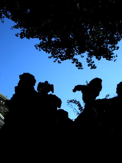 天狗像(同じく浦安の「猫実富士」)を背後から見上げていた時、愛嬌のあるおばさんに声をかけられました。