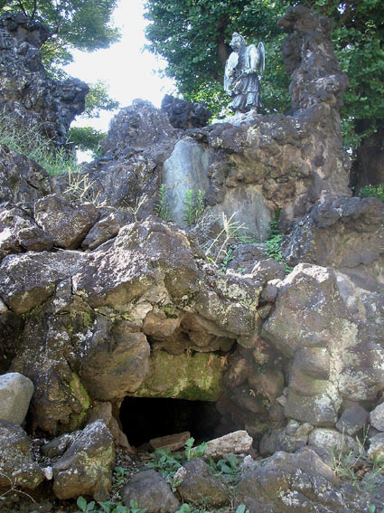 噂では、かつて富士塚の下に胎内めぐりができる大きな洞窟があったとのことです。まわりに土が埋まって穴もふさがれたと。私が見たところ、それはなかっただろうと思いますが、そうだったらスゴいですね。現在この中には大事な石碑が放り込まれています。