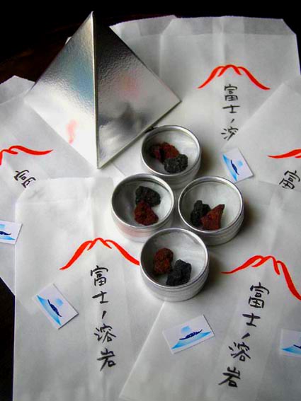 登拝の最後はこんな光景です。「残り物に福があるかな〜♪」 御神籤といっても、今回のは「富士山占い」です。今日あなたに注ぐ富士山パワーはいくつかな?とね(笑)。「1富士」から「5富士」の5段階で表わしたクジ(メッセージつき)の中に、さらにアタリが出たらこんな福がついてきたのでした。 それにしてもみんな好きね〜♪おみくじ。