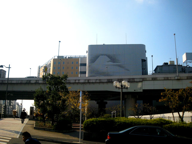 高速のすぐ向こうに【三峰】の頂きを描いた富士山があります。