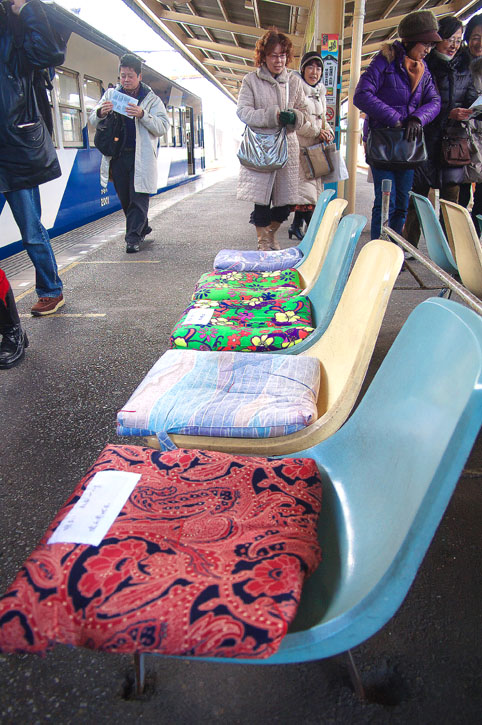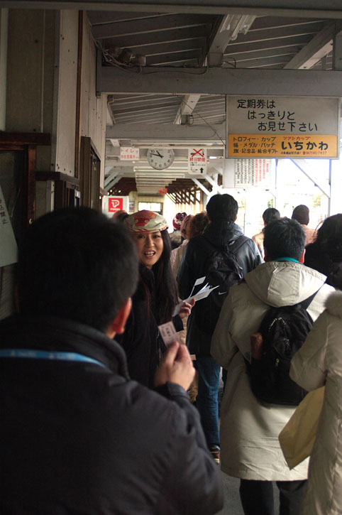 ******* 全員集合〜!!! おはようございます。 10:45amになりました。間もなく、徒歩20秒の流山電鉄の馬橋駅へ移動しま〜す。 「READY?」 では、改札を通過。「ぱすも」も切符の入鋏もなし。へ? とにかく20人がぞろぞろとプラットフォームへ流れます。でもまだ10:47。 これがわずか5.7kmの流山電鉄の所用時間と駅名です。始発から終点まで11分! 私たちが乗ったのはどれだったでしょうか。「なの花」か? 「流星」か? ちなみに流鉄の電車車両は、他に「流馬」「若葉」「明星」「青空」があります。どれもカラフル。名前は一般公募されたそうです。長くても3両まで。でも、特別小さな電車というイメージがない。よくある感じの車両です。それもそのはず。車両はすべて西武鉄道のお古であります。もしかしたら、自分が昔乗った車両にまた乗ったのかもしれません(笑)。 それにしても、「地震雲」がクッキリ! 流山駅のプラットフォームには、こんな思いやりのココロが。これならお尻も冷たくナイ! 流山駅の駅舎は懐かしい平屋。駅員さんが走ってるーーー。 さて、流山の富士山はどっちだ?