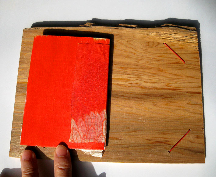 経木(松の薄板)に超薄の雁皮紙を不器用に貼り、