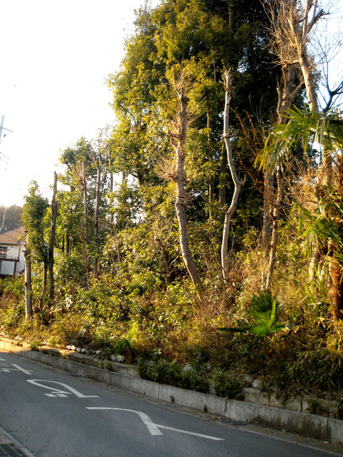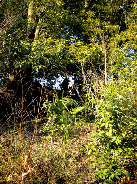 ここも神社はないものの、路傍にはこんなこんもりした一角が。雑木林の奥に、奥宮の石碑がシルエットとなって目に飛び込んで来ました。