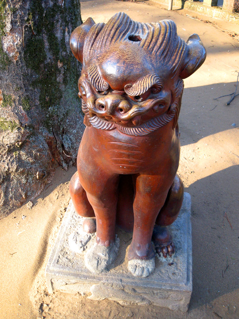 新春富士塚ツアーで行った松戸市馬橋の王子神社へ再び(正確には四たび)。 かなり大きいシーサー(笑)が出迎えてくれ、 幹周り3.22mの榎の巨木を見上げると、神社の境内に迎えられた落ち着きを感じます。 庚申塔のパレードは壮観。それを横目に見ながら奥の浅間神社へ向かう。 なぜまた訪れたかというと、知らせを聞いて。 「もういっぴきいたんだよ!!」