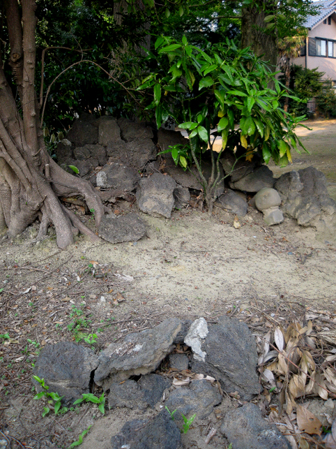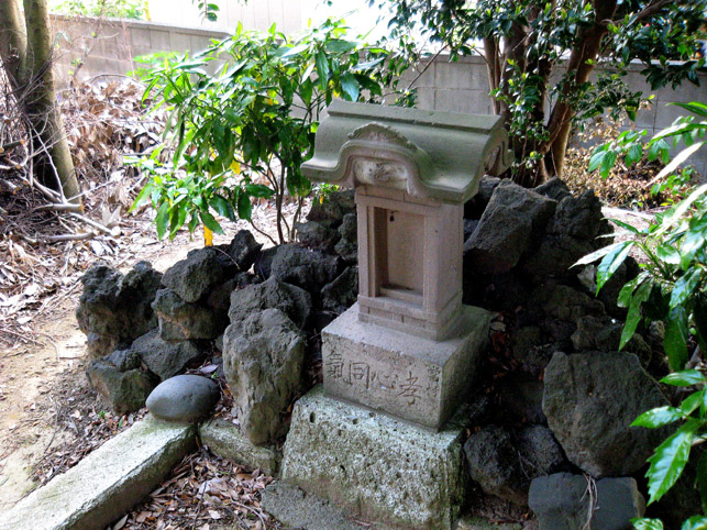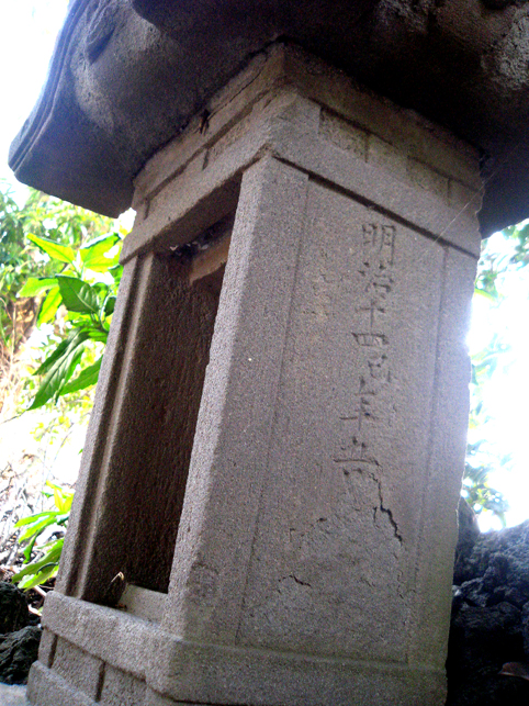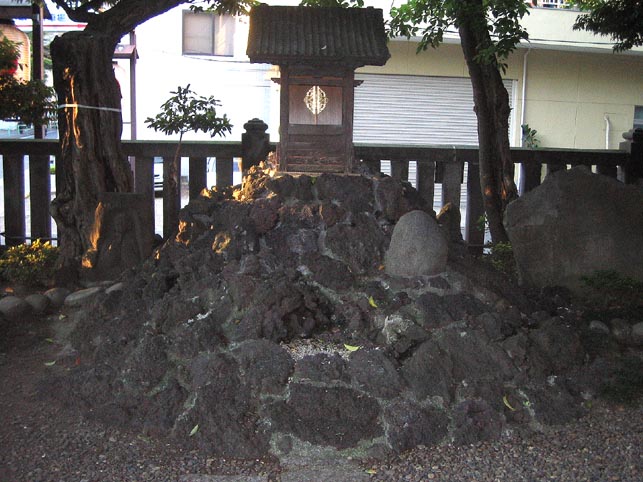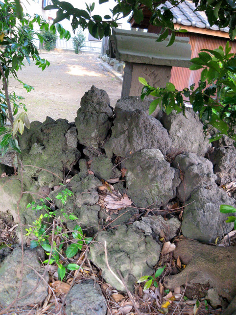 人が訪れている富士塚か、そうでないかは何となくわかる。それは「荒れて」いるとか講が解散しているとかに関わらず「眠っているか目ェぱっちりかどうか」の感じ。富士塚を多数お参りしていると、新しい人が来てそれに応えて富士塚が最近目を覚ましたか、そんなのがわかるようになります。 ええっとこちらは(笑)。。。眠ってました。 石段を3つ登り、外柵に立つ。「外柵」なんて言い方、富士塚に対してちょっと冷たいけれど、何となく他人の服を借りた印象があるから(笑)。移築とも違い、何かの土台を再利用した感じがするのでした。 まして、ボク石が「組まれて」いるのではなくて、祠のまわりに無造作に積んであるだけ。深川八幡富士のようにつなぎのセメントでガチガチに固めるのも味気ないけど、八重山諸島の火番盛のようにただ積み上げたようなのは、富士塚ではありえない。 たぶん動かされる前はもっとたくさんのボク石があって、ちゃんと登拝できた規模だったでしょうが、移築後、庭師や石工がいなかったか。。。塚の裏には中途半端な残骸のボク石が。 富士山、どこから連れて来られたの? そう語らずにはいられません。 では、祠を検証〜。「富士浅間大神璽」とある。 左右はこんな。願主と年号がありました。 しかし、土台には土地柄の面白いものが。 つづく。