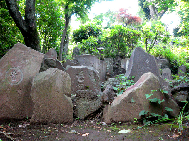 石段を登って間もなくして右側に「一合目」の碑が目に入ります。 小石川ナントカ町(現在はすべて小石川一丁目〜と表記)と刻んであります。 この富士塚を造った「山護講」の講碑です。本流は丸藤講のようです。 水鉢もありました。水鏡の綺麗なこと。これが頂上にあれば金明水でしょうが。 左を向けば、こんなにたくさんの石碑の群。この塚にはこの数倍の石碑があります。さまざまな講の碑がわらわらあります。富士講でないものもてんこ盛り! 再び右を見れば、「胎内」が目に入ります。 中にはコノハナサクヤヒメの姿がくっきり。お札によくある正面像です。傍らに昭和2年と読めますね。この塚の築造が文化14(1817年)ですから、ここでは新人です。 このあたりから山頂を見上げた画像です。まだまだ楽しみはいっぱい♪