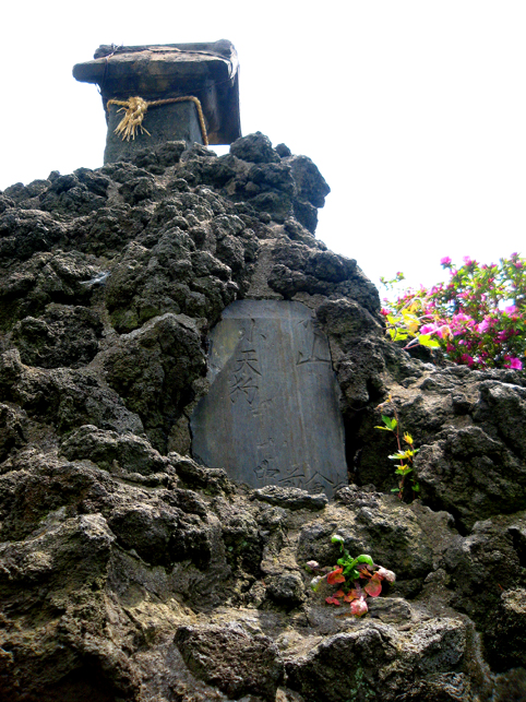 急斜面の途中に埋まっているのでよく見えなかったけれど、切り取られた碑であるのはわかります。右上には「○嶽山」の部分?