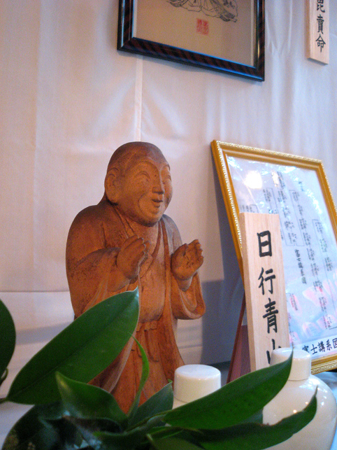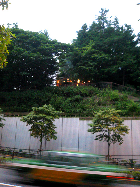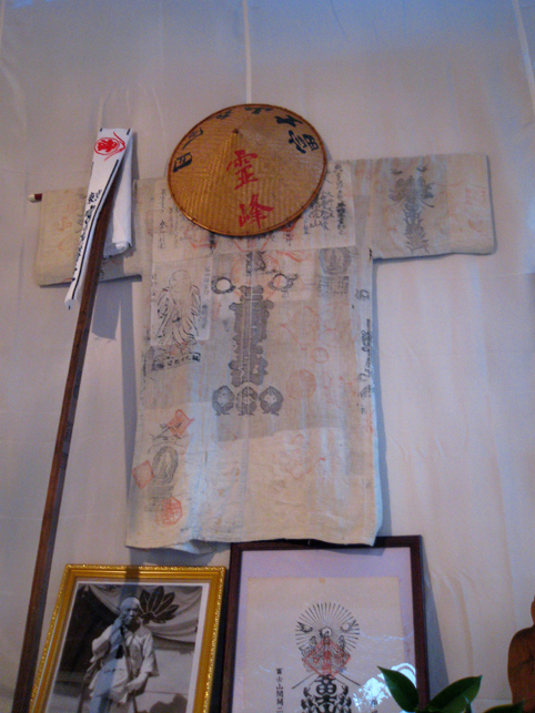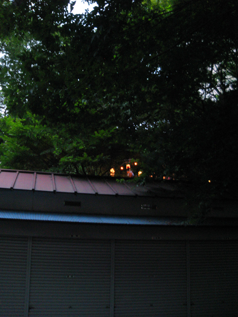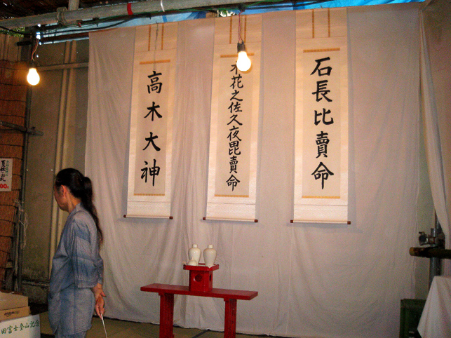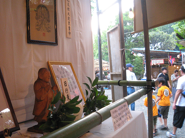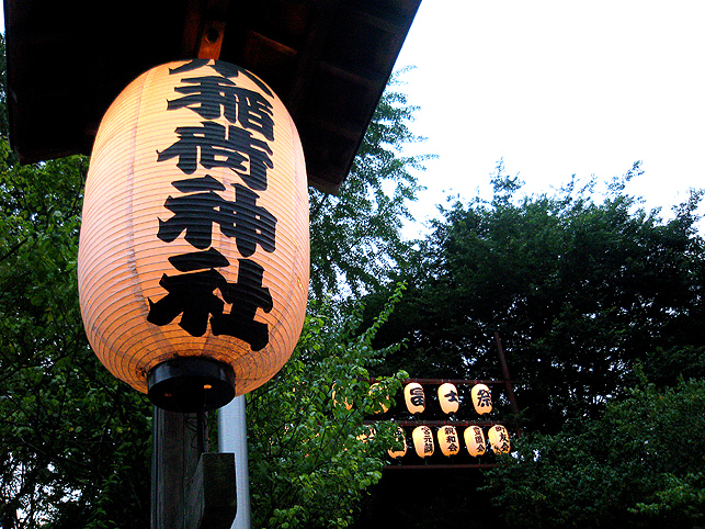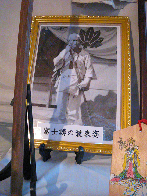 夕暮れになるまでちょっとぶらぶら。 早稲田界隈ですから古本屋が多い。つい古本と古着を買い、すごい荷物のまま歩き回ってしまいました。買った本は、以前持っていた藤原新也著「東京漂流」を再び。ちょっと自分に喝を入れるため(笑)。¥100の新品でしたから。。。 古着はいろいろ買ったけど、例えば浴衣柄のワンピース。\1000也。(花火大会用です) 水稲荷神社へ戻ると、人が増えていた。昼間しまっていたテンポラリー神殿ともうひとつの資料コーナーが設置されていました。 最後の写真は、古い本でお見かけする丸藤宮元講の故井田浅行藤開師ですね。ありとあらゆるものが並んでいました。講の方は不在ですけどね。 さて、提灯に灯もともりました。もう一回登ってみようかな〜。 神社の外側からはこんなです。富士山の頂上から煙が立ちのぼり、灯りも見えてきました。 暗くなって初めてわかる、富士の存在。