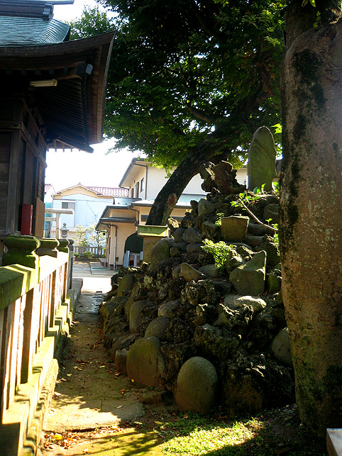 町名が変わるのは残念なことです。そこらじゅう同じ名前(大抵、合理性を優先した味気ないもの)になって、判別するのは○丁目の数字だもの。先日は横浜で、また、昨日も埼玉県で同じ話になりました。行政の諸事情はわかるけど、土地の歴史がわからなくなります。それでも地元の人は旧名で呼んだりしますが、よそから訪れる人にはわかりづらい。 ここも現在は東葛西となってますが、地元では桑川と呼んでました。 桑川富士の正面。登山道は15段の丸石で、この画面下にも何段か続いています。 とっても小さい富士塚です。でも、「天地境」もついています。 埋まってしまって見えにくいけど、五合目の下にも五が読める。五合五勺ってことかな。天地境は、正確にはどこなのでしょうか。漠然と5合目だったり、また7合目あたりにその名をつけたところもあったりして。。。 さて、裏もちょっと面白い。ボク石や丸石がこんなつけ方をされている。東京でも東側の富士塚に多いです。千葉県にもね。 真裏はこんな感じ。桑川神社の社殿と並ぶ。 塚の下に石祠があったり、いくつか表情がありますが省略。 それよりちょっと離れた手前のこの石碑。かつて赤いペンキで文字をなぞってあったようです。私はあまり色を入れたものは好きではないので、どうぞこのままにしといてと願っています。赤い文字を入れて似合うのは、お祭りで賑わう十条富士と駒込富士だけ。残念なことに、最近、浦安の猫実(ねこざね)富士の碑には、赤や白の文字が増えてしまい、興ざめしました。登らせないかわりに遠くからでも文字を読ませる工夫でしょうか。。。とっても残念デス。