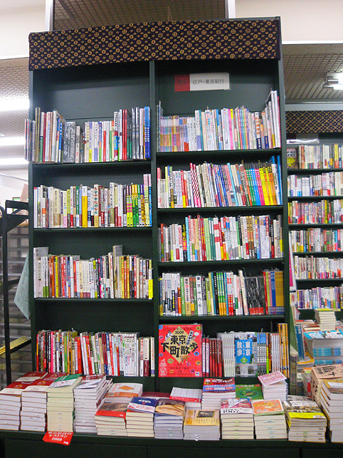 柳森稲荷神社を通りから見るとこんなです。 ここからでも境内の狸像がよく見えますね♪ 向こうのビルは、この神社の傍らを流れる神田川の対岸です。 道行く人も思わず足を止めます。「なんだここは???」 この人はずいぶん長い間、こうしてじ〜っと見入っていました。 「御防講 おふせぎこう」とは、火消し組の集まりだそうです。 神田明神を支える講のひとつで、今でも神田祭の中心的存在のようです。 神社の斜め向かいにあったボタン屋さん。 御主人が近所の人と世間話をしてました。 「フェルメール展が混んでるって?私はオープン直後に行きましたよ。ああ、楽に鑑賞できましたね〜。まぁ近いから楽ですがね」 御主人は、昔ながらのテーラーです。店の中には、型紙用の厚紙や芯に使う布や、チャコやルレット、竹製定規など、昔、母親の裁縫箱に詰まっていたような懐かしいものが並んでいて、今でも単品で購入できます。もちろん、ボタンも各種あり。店先にはアイロン用の「馬」も並んでました♪ 神田須田町はアキバに近い。でも神田神保町まで行くと、昔からこの富士山看板で有名な額縁屋「優美堂」が健在です。 また、時代小説の専門店があったりもします。 そして、三省堂本店に寄りました。 「江戸コーナー」の充実さはハンパでなかった! これは、古地図とかがある一角です。 そしてそして、 この辺が江戸と東京にまつわる散策モノ。知ってるNJさんやNKさんの著書もありました。 私の本も平積みになったらいいな〜。 この2階には「新書コーナー」が、すごくたっぷりとスペースとってました! う〜ん。神田ってやっぱり充実のブックタウン。 さすが、毎年「江戸検定」に挑戦する友人もここに寄るわけだ!!!!!! おっと!大事なことを忘れてた!柳森神社の中のもうひとつの特色。 「力石 ちからいし」の群。ここでは「さし石」とありますが、 くわしくは、「ご近所富士山の『謎』」のp79に書きました♪(笑)