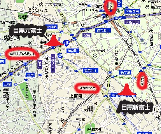 目黒元富士と目黒新富士の間は、約1.8kmの距離があります。