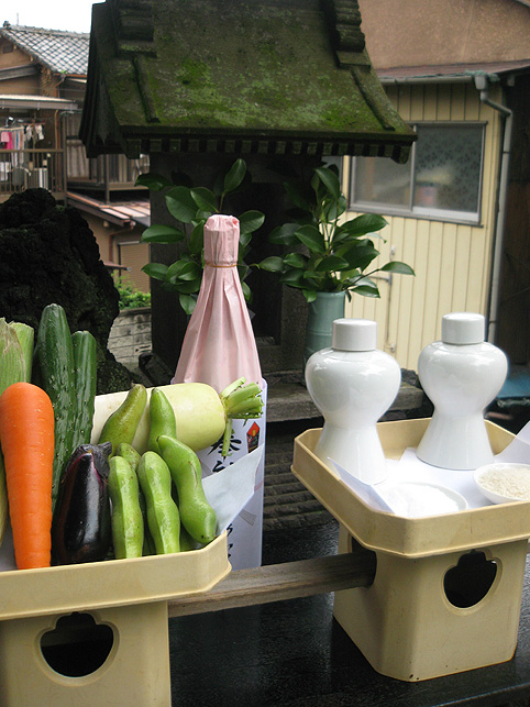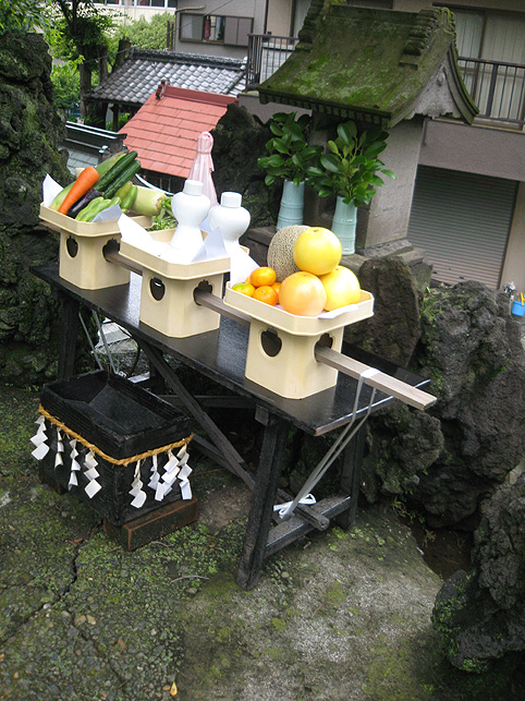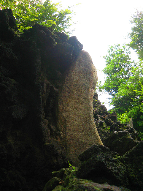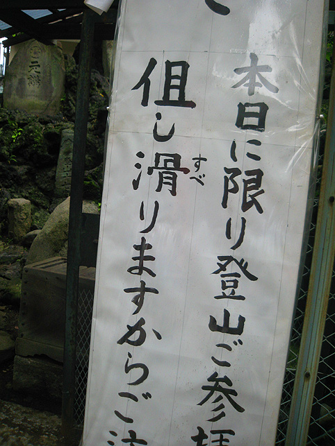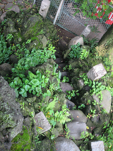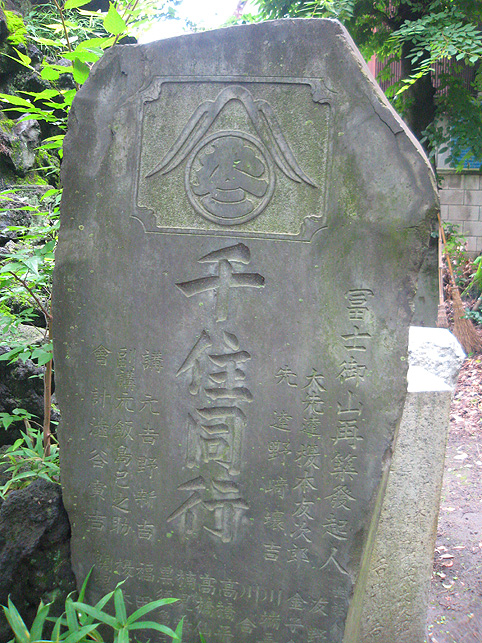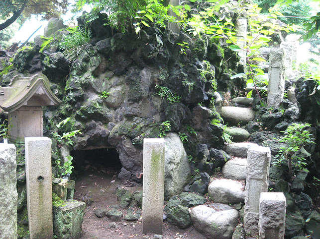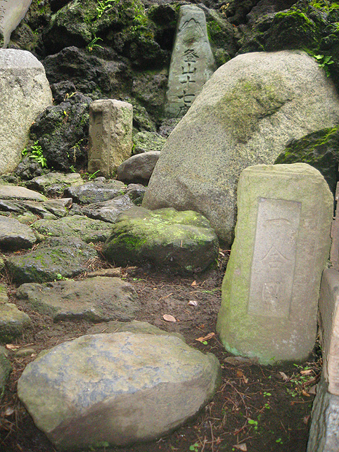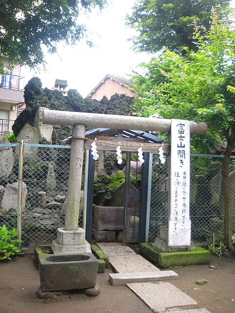 楽しみにとっておきました♪ この日の登拝。 ↑これは、春に訪れた際の富士塚ですが、 ↑千住宮元富士は、7月1日にだけ登拝できます。 「本日に限り…」と記されています。 いつもは、鉄門の前に御賽銭箱が設置されていますが、この日は門が開き、御賽銭箱の脇から登拝可能です。 講碑の数はおびただしく、全部をアップすることはできませんが、 全ての合目石が設置され、五合目には小御嶽もきちんと祀られていました。 7合目5勺には、この烏帽子岩。 頂上には「頂上」と刻まれた碑もあり、奥宮は素晴らしく供物が並んでいました。 こちらの宮司さんは、とても素敵な女性です♪ 御子息でもある、もうひとりの宮司さんと一緒にこの神社と富士塚を守っていらっしゃいます。でも、いろいろお話をうかがううち、地元の富士講が存続しない現在、この飾りつけや塚のお掃除がとても大変だということがわかりました。こんなにたくさんの供物を頂上に運ぶのに、どれだけ大変だったかを考えると、こうして富士塚を訪れる者にとっては有り難いことであります。 そして、感謝の気持ちがひたひたと沸き上がってきました。 富士塚は歴史的に見ると、ひとつひとつ考察するべき点はありますが、こうして地元の方たちのご苦労を知ると、過去よりも現在の扱われ方がとても重要だと思えてなりません。保存するだけでも、どれだけ大変なことか。。。 下山道は、奥宮の背後から2本あります。これは左側を上から見たところ。右側の方からが下りやすいです。でも、富士塚の構造をあまり御存知ない方は、登って来た道を下りる方をオススメします。 右側から下りると、こんな光景です。「御胎内」がくっきり! 塚の右側ふもとにあります。石祠は、屋根と社が合っていません。これもよくあることです。 千住宮元富士は、大正12年に千住神社境内の入口近くに築造されましたが、その後地震で崩れたため、昭和11年にやや奥に移築されたそうです。 ちなみに、戦争で爆風を受け塚がゆるみました。 登山道は4本あるそうですが、私が確認できたのは3本でした。 この日、私にとっても初めての登拝でしたので、ツアー参加の方たちを放置してまで、調査に熱くなっちゃいました♪ ごめんなさ〜い! ★★★★★★★★★★★★★★★★★★★★★★★★