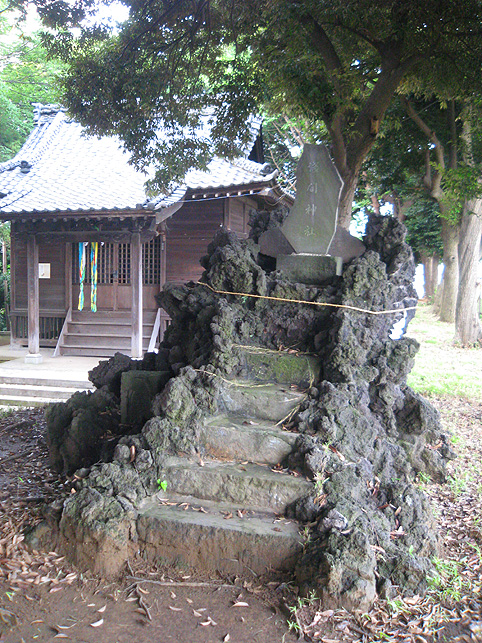 目的地に近づくと、「竹ヶ花雷電湧水」がありました。 池は淀んだ感じでしたが、近くに水の流れる場所を確認しました。(そういえば、和光市白子富士のあるあたりも、このあたりと似たような地形で起伏があり、水が豊富に流れていました) そして、雷電神社に到着。左の古いサインが渋くてイイ! 子狛犬が表情豊かです。雷電神社は新宿歌舞伎町の花園神社にもありましたね。 雷電ってことは雷神を祀っているのだろうと調べてみたら、群馬県邑楽(おうら)郡板倉町の雷電神社のサイト→なかなかインパクトあります! 二の鳥居から見た山です。でも、根本富士と違って、ここはこの山自体が富士塚ではないようです。 まずは、石段を登りきった頂上にある、雷電神社の社殿にお参り。 頂上はかなり広いです。社殿の右手が一段と高くなっていて、こんなシルエットが目に飛び込んできました。 高くなった場所には、「竹ヶ花富士」と呼ばれる富士塚がありました。 この碑の土台には「清水講」の文字、そしてこれを奉納した人たちの名前が刻まれていました。清水講は、根本富士を築いた富士講です。 裏側はこんな感じ。ボク石を積んだだけの富士塚です。おそらく移築され、縮小されたのではないかと思います。でも、この塚を乗せた山を含めて、訪れるには価値ある場所であります。ちなみに、この富士塚を造った富士講の映像は、ここからすぐの松戸市役所にて閲覧できます。 さて、富士塚ツアーも残すところあと1回。(荒幡富士/所沢富士の回に申込まれた方、ごめんなさい!キャンセルとさせていただきました) ★8月26日の富士吉田のツアーは参りますよ〜♪ 楽しみ楽しみ♪ (定員には達しましたが、あとおひとりなら大丈夫です♪ 先達さんの塩加持等、ディープな富士講の行事に興味のある方は、今週中にご連絡くださいね) 7月16日に追記: ★富士吉田のツアーは、おかげさまで申込みがうまりました。大変感謝しております! 心に残るいい旅になるよう頑張ります。 ★クラブツーリズムの会員の方は、ブログを見てらっしゃらないと思いますが、一応、告知をさせていただきます。8月9月のツアースケジュールが発送されたようですが、それらは催行されませんので、御了承ください。(ちなみに、記載日程も校正なしで印刷されたもので、誤りがあります) ★★★★★★★★★★★★★★★★★★★★★★★★