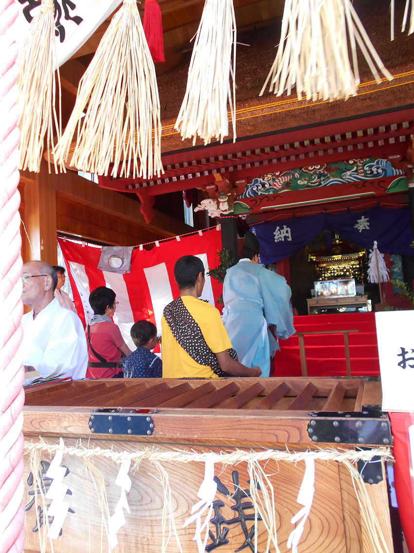 杉戸や赤松の初山でも「幸手は行きましたか?」と尋ねられたほど、幸手の初山は有名です。 氏子の方達は荒宿の「桜講」。桜はもちろん浅間神社(コノハナ)のシンボルですね。幸手宿は日光街道と日光御成道の合流地点だったせいか、町も人もオープンです。皆さん大変親切で、面白いお話もいろいろうかがいました。 お参りをして子供の額に御朱印を押してもらうのは他と同じですが、とにかく人が多い。ひっきりなしに赤ちゃんを抱いたファミリーが訪れます。この日のために駆けつけた神主さんは、午後4時を過ぎてもお昼ヌキでした。 ここでは団扇や痰切り飴のほかに、長ネギが配られます。 「節のないまっすぐな子に育つように」というのが一般的な説明ですが、根っこつきの2本を配るのは、根を白髪にたとえて「共に白髪の生えるまで」という夫婦円満の願いを兼ねているそうです。コノハナラベルのお酒も飛ぶように売れていました。ブルーボトルが涼しげです。 富士塚は平地に盛り土をして造ったもので、その上に浅間神社の社殿が乗っかっています。 小御嶽神社が立派でした。夜は縁日が立ち、賑わいが増します。 Facebook あり〼