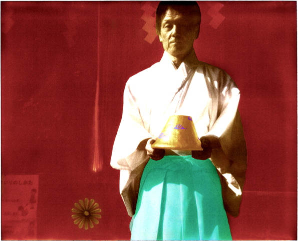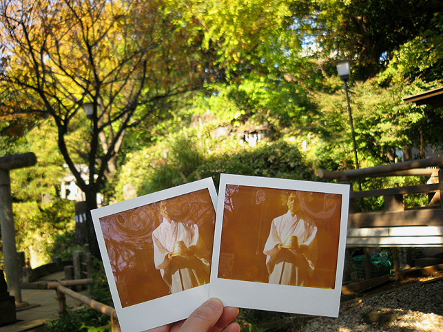 どうせ形がなくなるのに創るって? それも美術家だというのに? 一見、相反することのように思えるかもしれませんが、そうではありません。 多くの人は「残したいから創る」「見せたいから描く」。 それは自然なことです。 また、退色したり破損してしまった過去の作品を保存のために、 修復、復元したりすることも大事なことであります。 でも、もっと意味のあることは「創る行為」そのものです。 クリエイティビティーは、人間に与えられた素晴らしいギフトです。 芸術家でなくても誰にでも備わっているもの。 「ある日突然、もの創りを始めたくなった」 「特定のイメージがわいてきたので、それをカタチにしたくなった」 それもクリエイティビティーの根本。 表現方法がどんなであれ、その行為はとても尊いことなのだと思います。 人間として。ポジティブなアクションとして。 そう思うようになってから、私は作品を残すことよりも、 消えてもいいから「創る行為」を尊重することになりました。 インスタレーションやパフォーマンスはその延長上です。 それらは、一過性の創造行為であっても意味あることです。 ですから富士塚に関して言えば、塚を造ったという行為や、何度取り壊されてもまた造るという信念、これらに私は着目しているのです。もちろん富士塚は信仰心ゆえの歴史的遺物で、そこに芸術的価値を求めているわけではありませんが、私にとっては充分アーティスティックな魅力を放つ存在です。日本では、芸術とはこういうもの、としか教えられないので、理解に困難かもしれないですが、クリエイティビティーの豊かさは、アートにも通じるものなのです。(もちろん、富士塚には後世に残ってほしいと願うのですが、縮小されようが、変形されようが、充分評価するのはその点です)私が富士塚に魅力を感じるのは、コンセプト性を持った作品創りを目指しているからなのでしょうけどね。 話が違う方向に走り出しそうなので、この先はまた機会のある時に(笑)。 前置きが長すぎましたが、今回書きたかったのはこれ。 ポラロイドで撮る「トラベリング・フジ」シリーズです。 旅は道連れ 1 旅は道連れ 2 旅は道連れ 3 実は、このシリーズはしばらく中断していました。理由のひとつは、新しい土地に旅に出られなかったこと。もうひとつは、Polaroid社がフィルムの製造中止をしたことです。 俗に「ポラ」と言うとインスタントカメラ全般のイメージを持たれますが、私はPolaroid社のポラロイドフィルムの正方形タイプにこだわっています。フレームが縦でも横でも連結作品になりやすいからです。(結局、「トラベリング・フジ」では、見栄えを重視しすべて横位置にしたのですが) ポラロイドを使うということは、撮影課程で難しいこともありました。かつて、フィルムがなくなりかけた旅先の石垣島で、フィルムを買おうと探しましたが、離島の写真店では扱っておらず、途方にくれました。幸運なことに、現地の写真家からフィルムをいただけることになりました。でも残念ながら、彼の持っていたのがフジのフィルムだったので、私のカメラには使えませんでした。 最近、Polaroid社からの復刻が噂されていますが、私の機種に合うのが出るとは限らない。この先どうなるかわからないけれど、数年前に買ったフィルムのストックを使って、また撮ってみたくなりました。もちろん、すべて使用期限切れ。色が出るのか出ないのか。 残念!やはりこれ以上色は出ませんでした。ポラに保存の目的はないですからね。でも、それも受けとめるのが私流。時間経過もひとつの結果です。他の方法で生かせばいい。 せっかくデジタル修正のできる時代ですから、アナログとデジタルの組み合わせだってよいのだ。一旦褪せたものに手を加えてみました。今後、違う展開で新しいシリーズを始めるかも? 金箔富士を持って立つのは、鳩森八幡の宮司、Hさま。 「面白いことやってるんだね〜。来年も、開山式にいらっしゃい」 「はい。6月3日ね♪」 私のカメラは1200si。 昔、写真家の友人から一時期借りてたやつはよかったな〜♪ 金属本体に褐色革貼りでした。