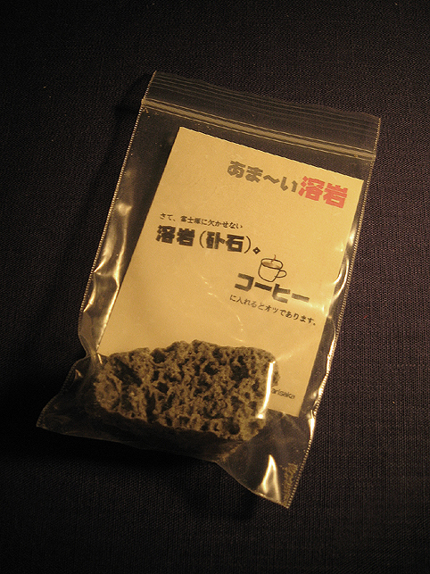 心より感謝いたします。 イベント会場である、お台場 ZEPP TOKYO2階、TOKYO CULTURE CULTURE (東京カルカル)は、大観覧車のお膝元。看板にも観覧車が映り込んでいました。 こんなマイナーなテーマでもいらっしゃる方がいるのだろうか、と不安でしたが。。。 集まってくださいました。例によって、一番楽しんだのは私ですね♪ 迷走した私でしたが、大山さんの絶妙な仕切りのおかげでイベントのカタチとなり、楽しんでくださった方が多かったようです。ありがとうございました。 限られた時間のため、紹介したかったモロモロは4分の1でしたが、少しでも富士塚の魅力が伝わりましたらそれで充分です。近くに「富士塚があるかもしれない!」と思ってくださることが本望ですから。 また新しい切り口で本を出す予定ですので、今度とも富士塚をよろしくお願いいたします。 富士塚ツアーもまたやります。御参加くださいね〜。 さて、こういう場では新しい情報も飛び交います。 「○○の庭に富士塚らしきものがある!」と御提供くださったり、私が行ったことのない富士塚の詳細もたくさんいただけました。本当にありがとうございました。 リアルタイムで見たTwitterのアップも面白かった♪ 質問がつぶやかれ、画面を見てそれに答えたり、話をふくらませたりと♪ 本当にお世話になりました! ……………………………………………………………… 追記 3/17 富士塚ナイトに関する【つぶやきまとめ】です。 errieさん、ありがとう! ……………………………………………………………… そして、イベントならではのお遊びに、「富士山御神籤(相性のよい富士塚付き)」も引いていただいたり(1〜5富士で表わした吉凶?)、ジャンケン大会でプレゼントもお渡しできました。 ↓プレゼントがコレ。 「あま〜い溶岩」は、実は砂糖菓子なのです。おそらくコレをゲットされた方は、本物の溶岩だと思ってらっしゃると思います。「溶岩をコーヒーに浸すと甘い出汁が出るのか!?」と。 ごめんなさい(笑)。説明不足で。ちょっとおどかしてみたかったのです。 割るか削るかして、コーヒー/紅茶や煮物にお使いくださいね〜♪ ちなみにこの「あま〜い溶岩」は、富士山の麓の河口湖町船津で作られ、土産物として販売されております。船津と言えば、船津の胎内。(富士講による)最古の富士塚「高田富士」を築造した、高田藤四郎が発見した胎内です。 というわけで、富士塚に御縁のある土地から来たものですから、きっと富士山パワーも宿っていますよ! あ〜シャックリが止まりません。 イベント終了後のオフ会で充分飲んで来たのに、帰宅後また飲んでます。 明後日は某新聞の取材を受ける予定です。 その場所をこれから決めることにいたします。(実はこれが楽しい♪) そうそう、乃村工藝社の前身があの【浅草の人造富士山】を作っていたこと、てことは昨年のガンダムは現代の富士塚(!?)っていう大山さんの話は面白かったですね! いろいろ発見があって、いい夜でした♪