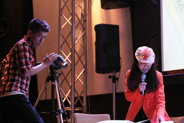 【富士塚ナイト】に来てくれた、友人のNさんから画像が届きましたので、いくつかUPします。 (カルカルからいただいたDVDは、前半が再生不能で。。。う〜ん。残念) なので、貴重な画像です。 長〜くなってしまったイントロのはじめのあたり。江戸時代の折りたたんで持ち歩ける地図「江戸切絵図」(の復刻版)を、寄って撮ってもらってるところ。 「ほら。こんなところに千駄ヶ谷富士があるんです」 広いスペースは横に長い。スクリーンは3枚並んでいました。 映っているのは、上落合富士のサブ2枚。 「左:頂上からジグザグの下山道を覗くと、こんなに急です」 「右:ここには天狗が3人います。これは背後からの図」とかなんとか。。。 のんびりやっていたから全然進まなかったね〜(笑)。 富士山御神籤をひいた大山さん。 「1富士だぁ。数の多いほうがいいの? てことはこれ、凶ってこと?」 「なになに。『ここも富士山のふもとです』だって。なぐさめられてるよ〜」 「相性のいい富士塚は。。。『池袋富士』。いいじゃん♪」 池袋富士は7月1日しか登れないけど、是非行ってみてくださいね! イイ富士です。 ちなみに1富士でも「凶」ではありません。 登山は登ったり下りたりを繰り返すもの。現在、合目で例えれば1合目にいるだけで、これから登山をするかもしれないし、下山したばかりなのかもしれません。一番コンディションのいい場所という解釈もできますよ♪ それにしても、御神籤に出た「相性のよい富士塚」を、何人かに聞いてみたところ、結構オドロキでした。各人、何かしら御縁のある富士塚が出たのですから。ホント。 私は2富士で、相性のよいのは十条富士でした。本を書くにあたって、取材の振り出しがここの講との出会い。それから数珠つなぎに情報が集まってきたのでした。私にとって、とても御縁のあるところです。 イベント終盤。回収したアンケートを元に、参加者とお話をする図。 アンケートの中で、「興味のある/行ってみたい富士塚は?」の集計は、またの機会に。結構「ピグモン富士(中割富士)」が人気でしたよ〜♪ これらの画像は、すべてNさん提供。彼女のブログに紹介されています。 Nさん、ありがとうございました。