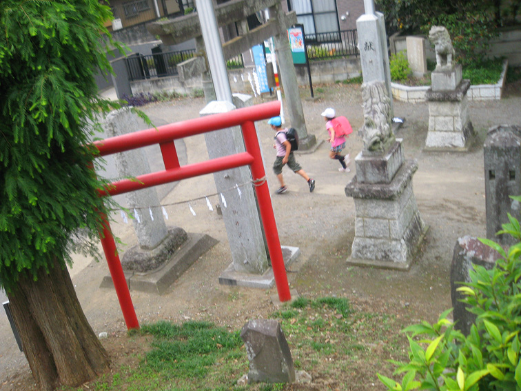 横から見ると、目つきが悪そうですが、 こんなにつぶらな目をしています。 頂上の奥宮の前で、登拝者を迎えます。 通常、猿がいるのは塚の麓ですが、川越の富士塚ではこの位置にいるのをたびたび見かけます。 私が塚の上でうろうろしていると、子供たちの声が聞こえました。 もう下校の頃です。 「何してるの〜?」 「ここに猿がいるの。ほら。私はその写真撮ってるの」 「あ、ホントだ、猿だ! 知らなかった!!」 塚に近寄って見上げていた子らは、登って来る様子はない。 オトナたちから、登っちゃいけませんと言われているのでしょう。 最近のキッズはお行儀がいいです。 そして、神社境内に自転車で乗りつけた仲間を見つけると、 猿のことなど忘れて、皆仲良く行ってしまいました。 つづく。。。