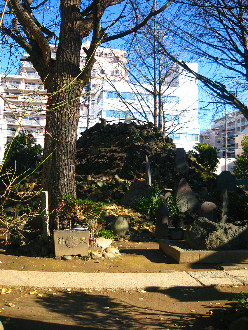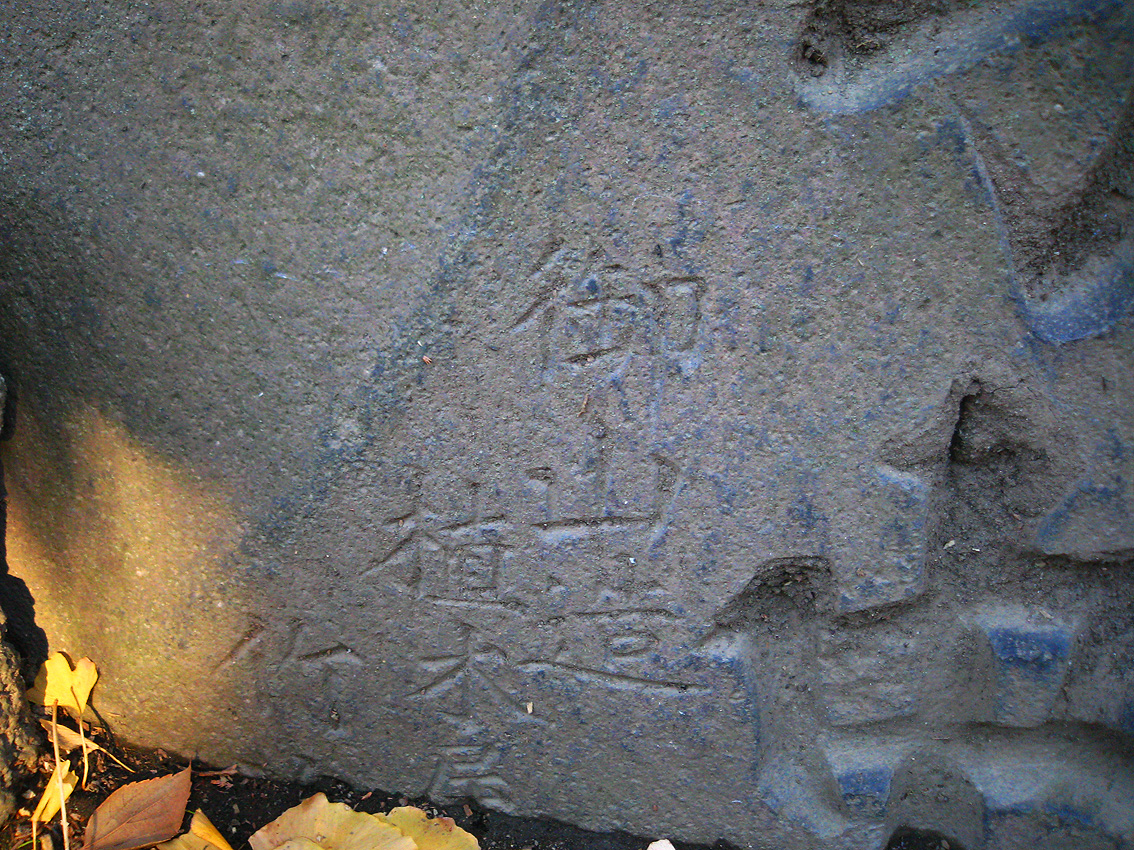 また時間が遡ります。 実は、大晦日の1週間前にも砂町富士を訪れていました。 元旦から富士山の連載がスタートした朝日新聞(静岡版&山梨版)の取材で ここに来ていたのですが、いつものことながら取材そっちのけで つい新しい発見はないかと物色してしまいます(笑)。 富士塚の頂上には、「浅間嶽大日如来」の碑があるのですが、 以前から私はこの「大日如来」の文字が気になっていました。 この名があることからも、この富士塚は相当古いのですが、 この日、中道にてこの仏像を発見しました。(今頃ですけど!) 破損した部分がセメントで修復されていますが、 長い耳たぶや装束からも、大日如来像に違いありません。 現場でお会いしたY講元に聞いてみました。 「ようやく大日如来像に出会えましたよ♪」 「ふっふっふ。前からありますよ〜〜〜」 私がここに来たのはおそらく10数回は下らないでしょう。 さすがに普段からちゃんと見ておけとも思いますが、 それでも、こういうものが目に入るかどうかは御縁次第。 出会えるのはありがたいことです。 それからこれ。 中央に「氏子中」の文字が目立つこの石碑。 「砂町富士にはホンモノの富士山の土が混ざっている!」と、 東京人10月号の中でも書かせていただきましたが、 この碑を画像で記録したのは、実はこの日が初めてでした。 右側に、 「御尊山土持 土方 世話人 植草喜左衛門 矢沢捨次郎 畑 長吉」とあり、 「御尊山」つまり富士山の土を「土持」つまりその土を運んで来た という記録なのであります。 「土方」の文字も見えますね。名前の明記はないけど 土方をしていた誰かということでしょう。3名の世話人のもとに。 左側には、 「御山造 植木屋竹次郎」とあり、 届いた土を盛って山を造ったのは、植木屋竹次郎さん。 これらの文字を読んで、かなり興奮気味の私でした。 記者さんも驚いていた様子。 暖かい日差しが冬であることを忘れさせるほどでした。 さて、3つめの発見は富士塚から少し離れた場所にありました。 最近、御水講の方たちがとても大切にしている「元八まん道」の標。 亀戸浅間神社にあった道標を思い出させます。 で、その右側に鎮座するお不動さん。 その手前の水盤を見て驚きました。 奉献の文字に挟まれたのは、まぎれもない富士山マーク。 「Yさん、これは御水講のですよね?」 「そうですよ〜〜〜。古いですよ〜〜〜」 参りました!! Facebook あり〼