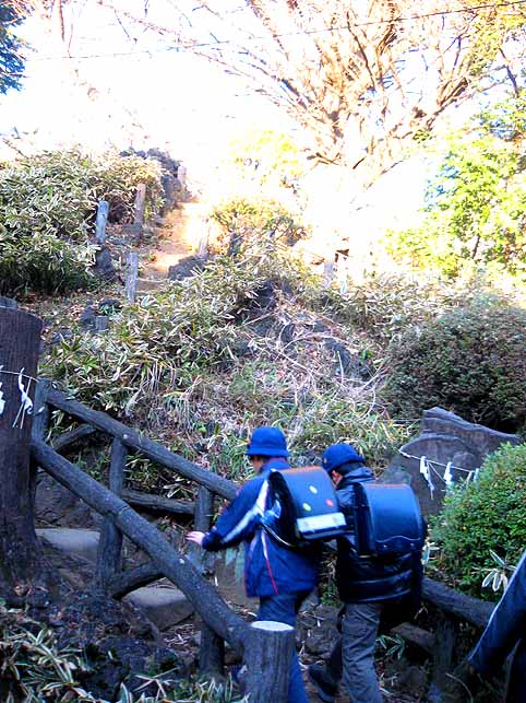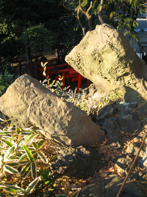喜んでいただきました♪ 嬉しかったです! でも、富士塚のそばがこんな状態になってる〜。何か工事してるんですか??? 聞くと、社務所の改築で今年いっぱいこんな具合だとのこと。 「あ、でも、富士塚はいつでも登れますからね〜♪」って念を押されました。 ホッ。いつものように、富士塚は夕方になっても癒しオーラをふりまいています。 風水によると、ここは富士山からの龍脈が繋がっていて、パワーゾーンだということですよ♪ そうこうしてると、学校帰りのボーイズが千駄ヶ谷富士にやって来ました。 「写真を撮ってる人がいるよ〜」と私を挑発しながら走って逃げました。 彼らを追いかけてもよかったけど、ほっておいたらつまんなそうな顔。(笑) 今度遊びましょう♪ 塚の背後には、樹齢400年の大木もあります。何の木だったっけ? これに会いたくて訪れる人もいますよ。いい木です! 登山道の背後にある「小御嶽」も、新年のおめかしをされていました。 そのそばから頂上を目指します。こんな感動的な夕陽に迎えられました♪ 頂上の奥宮。 傍らの「釈迦の割れ石」。 下から見た、釈迦の割れ石です。こんな傾いた岩なのに、地震にもよくぞ耐え現在に残ってくれてます。この千駄ヶ谷富士は、築造が最古ではありませんが、江戸時代からの山容を変えていないという意味(他の富士塚は、移築などが多いため)で最古の富士塚と言われます。 鳩森八幡神社。都会の中にありながら、いい「気」に満ちた場所です♪ 江戸の人たちもそれを知ってここに富士塚を築いたのかもしれませんね。 この直後、ご近所のお店で面白い情報をいただきました。 「あそこはね、平岩弓枝さんの身内なんだよ〜」 合点がいきました! 時代小説を書かれている平岩さんが、しばしば作品の中に富士塚を登場されているのが。 私の本の中でも、平岩さんの著書からちょこっと紹介しております。(p36) さてこの日、新しくいただきましたお守りはコレ。パソコンに貼るといいようです。 おかげさまで、これを貼って以来私のMacも順調です♪