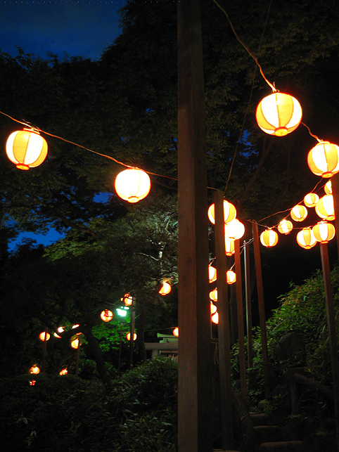 横浜の七富士参りに同行した6月1日は、大変濃い一日でした。日記書くのに、丸々3週間かかってしまったもの(笑)。 しかし、2日後の6月3日もすごかった! 時間は前後するけど、夜編から。 やっぱりな〜。もう誰もいなかった。 鳩森八幡に到着したのは19時20分。当初は「間に合えば駆けつける」つもりでしたが、やはり気になって寄ってみたのです。自然と足が向いたというか、この日は重要な日でもあったから。 17時からの「開運山開き大祭」は過去何度も行っていますが、こんな光景は見たことなかった♪ 実際はもうちょっと明るかったけれど、カメラにおさめた画像は、闇の中に浮かぶ提灯の赤。こうして見ると、ちゃんと富士山を形づくっています。その美しさにしばし見とれてしまいました。 そうかそうか、確かにこの日はお山には提灯がつけられるけど、灯がともる夜までいたことなかったし。と、ひとりごちながら、本殿での参拝そして富士塚登拝に急ぐ私。 頂上の祭具には提灯の赤が反射し、とても幻想的でした。 儀式のときと同じルートで歩いてみました。 たくさんの提灯に照らさせているとはいえ、足元はかなり暗い。私はどこらへんが危ないかわかるけど、富士塚に夜登る人は充分注意してください。(って夜登っちゃいけませんよ。こういう特別な時だけにしてね。あと、酒気帯び登拝もひかえて。もし事故があったら、以後、登拝禁止になるでしょうし、富士山も悲しみますから) 登山口には、こんなものがありました。 富士塚登拝の御朱印かぁ。私も欲しかったな〜と思っていたら、ちょうどH宮司が境内を通りかかりました。 うう。どうしよう。式に間に合わなかったこと、挨拶しようかな。でも(暗がりだから面が割れないかもしれないし)一参詣人として声かけても不自然じゃないよな〜と思いながら、 「あのう、御朱印はもう遅いでしょうね」 すると、 「あれ〜! 今頃来たの?もう終わっちゃいましたよ〜」とバレちゃった(笑)。 「実は、さっき富士山から戻って来たばかりなんです」 社務所に近づくと、Oさんに出会いました。声をかけると、 「今年はたくさんいらしたんですよ。あっちまでずっと列ができて。あなたの本持って来た人も多かったんだから」 ひぇ〜!それはとても有り難いことでした。 そして一旦社務所に入ったH宮司は、御朱印を持ってあらわれました。 「御朱印サービスは4月から始めたことなんだけど、版木は10年前に氏子さんが彫ってくれたものなんです。ほら、富士山の絵が『富』の字になっているのわかります?」 「ホント!いいですね〜♪ ありがたくいただきます」 しばらく雑談しているうちに、富士塚の提灯はいつの間にか消えていました。 「じゃ来年またね。スケジュール空けておいてくださいよ〜(笑)」 やはり行ってよかったと思いました。 特別な日、千駄ヶ谷富士は光の化粧をする。 覚えておこう。来年もぜひ!