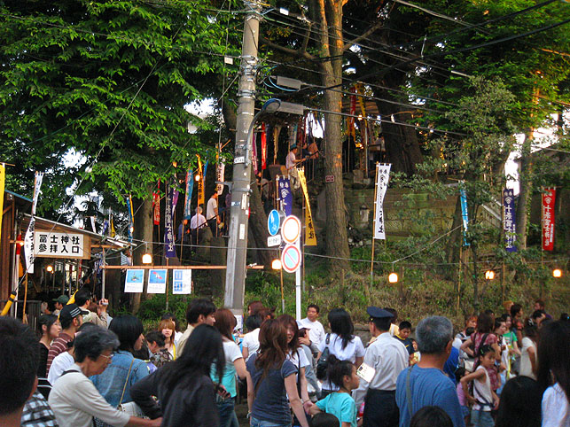 7月1日はホントに大忙し。朝に山開きの儀式があると思えば、夜は祭で熱気を帯びる町がある。こちらは夜編。この日最後のロケ現場、十条富士へ向かいました。