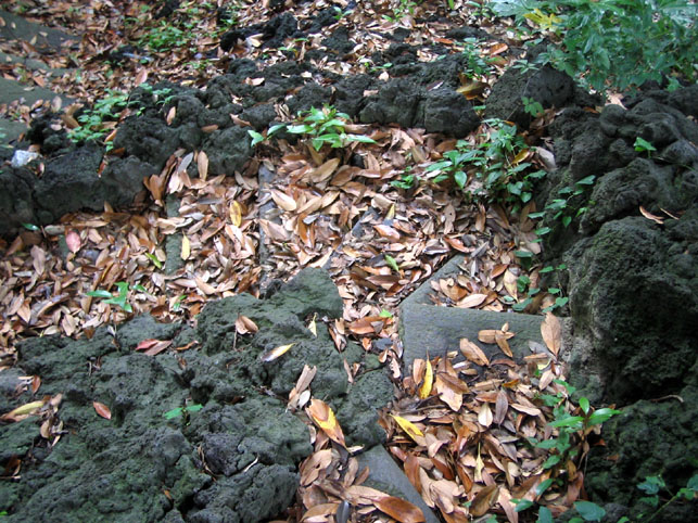 ひとしきりこの子と会話をした。言葉にならない声でかなり饒舌な猫でした(笑)。しかしいきなり出て来て何なんだろう、しかも身重の体で。「君もコノハナさんを見習って、いい子を生むんだよ〜」と励ましましたよ。(富士山の祭神、このはなさくやひめは火を放った室の中で出産したと言われています) いやはや、気になっていた気配の元は解決しましたが、もちろん猫だけではないです。猫が語りかけるということは他のものも私の存在に気づいているわけでして(笑)。。。聖地でよくある動物たちのメッセージはこうです。例えば、ある時から蚊が群れになって襲って来たりしたら「もうお帰り」と言われているととればいいのです。今回は猫が教えてくれた、ということにして。。。 それにしてもこの猫、かなりなついてきました。私が歩くと数歩先に回って寝転がる。通り越すとまた先回りして寝転がる。どこまでもその繰り返しで。。。 船堀村のこの一帯、昔は豊かな田園風景が広がっていたそうです。船橋市で見たいくつかの富士塚のように、広く平坦な土地にこんもり繁った森はまるでオアシス、癒される一角だったと思われます。生きものを風から守り日陰を与え、水を循環させる生きた聖地。。。森の中に人々が塚を築いて神を呼び、祈りを捧げた。やがて講はなくなり塚だけが残った。でも、もとからあった土地の自然神が「人の想いを受け継いだ」。宗教に関係なく。祈りは自然に還っていった。。。久しぶりに沖縄の御嶽(うたき)に似た空気を感じたのは、その同質なスピリチュアリティによるものだと思います。 この水盤の水が意外なほど透明で柔らかそうだったのが、とても印象的でした。それにしてもさっきから、何かに見つめられているような気がしてなりません。。。 |