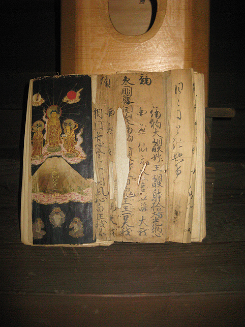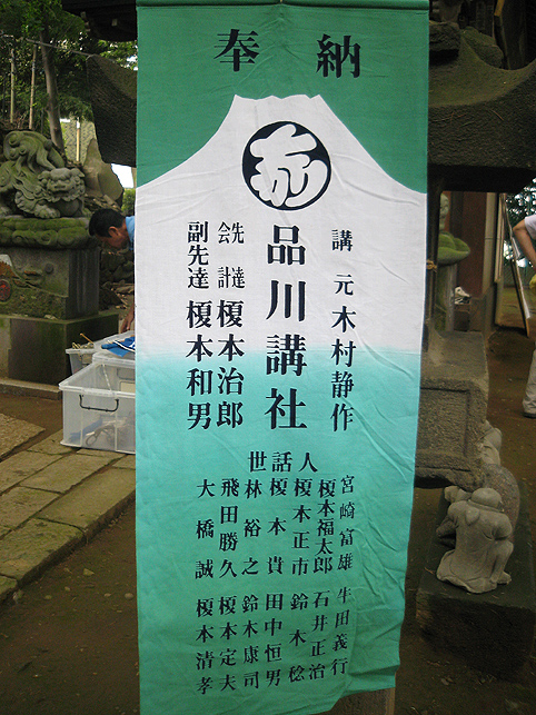 実は、お山開きに出かける前に、品川丸嘉講社の方たちが富士吉田の御師「菊谷坊」と縁があることを知り、当日、あるものを持って行きました。 10年前に富士吉田の火祭り(富士山のお山じまい)に行った時に出会った強力さんの写真です。もしかしたら御存知かなと思って。 上が私のアルバム、手前は品川講社の方たちが一昨年行かれた時のアルバムです。 同じ強力さんが写っていました! 先達が言いました。「ミツジだよ!スズキミツジ。まだ生きてるよ〜♪」 それを聞いて嬉しかった〜。ちなみにミツジさんの法被にある「江戸川富士講」というのは、丸星講だと思います。